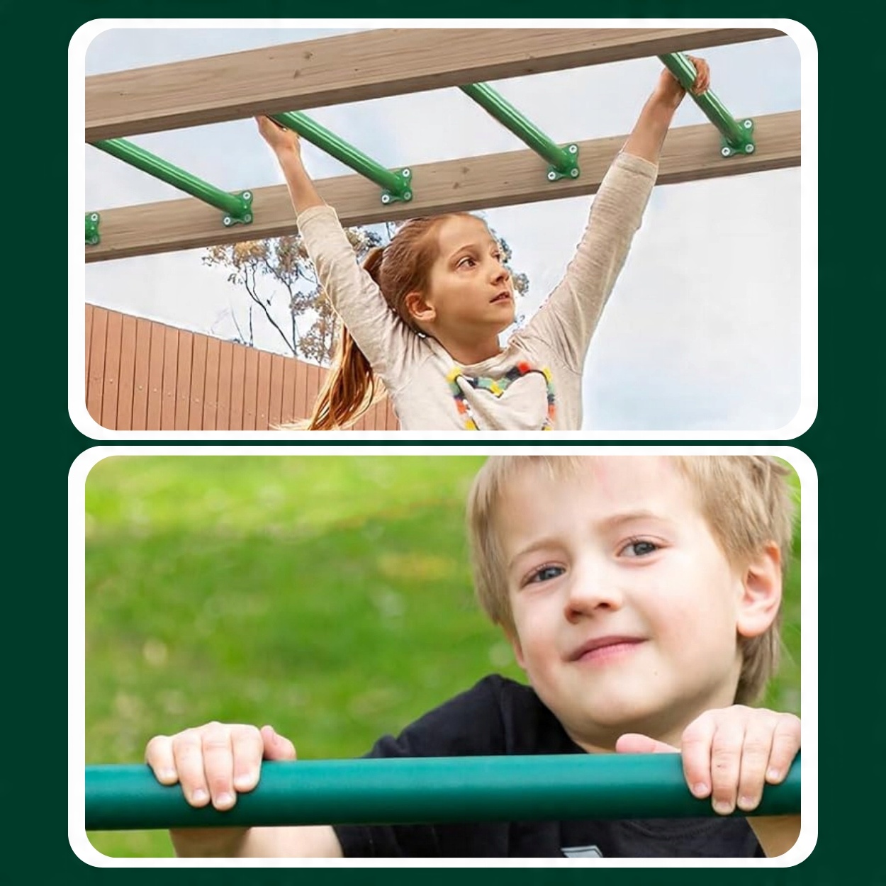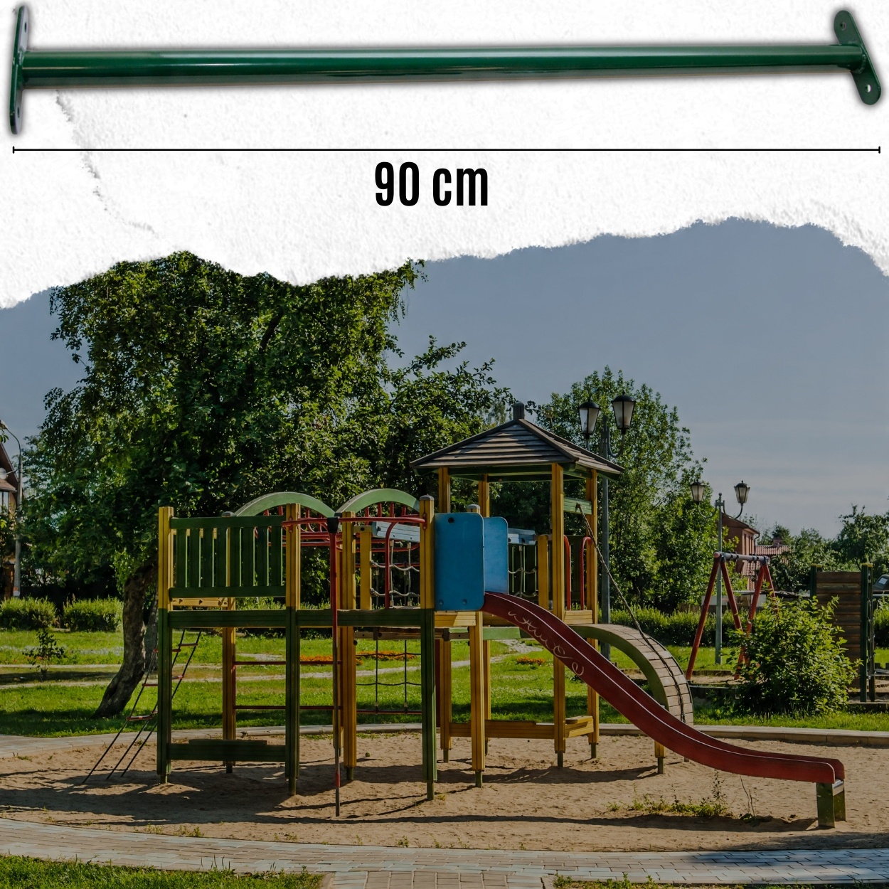 ✅Эстетичный внешний вид:Благодаря темно-зеленому цвету штанга идеально вписывается в антураж детской площадки, добавляя визуальную привлекательность и создавая приятное и безопасное пространство для игр детей