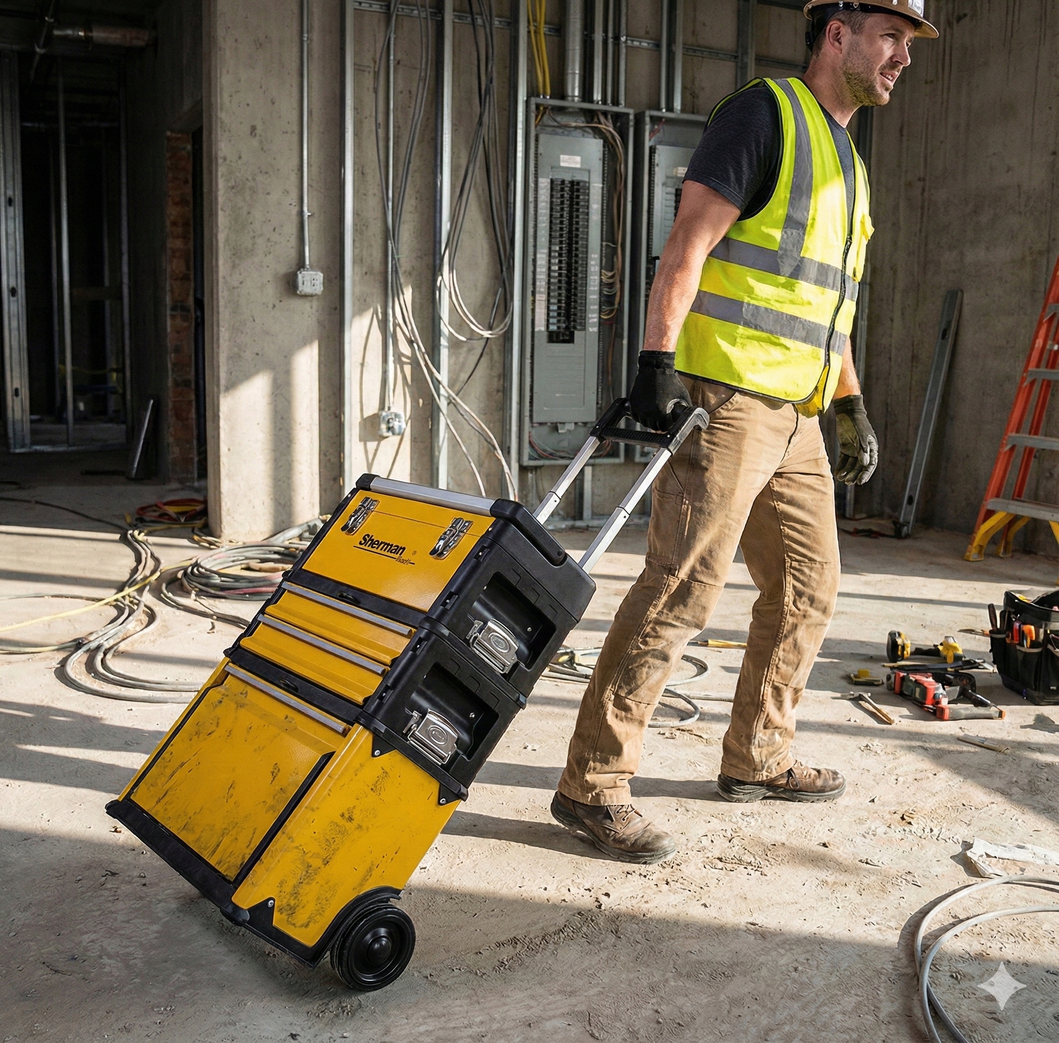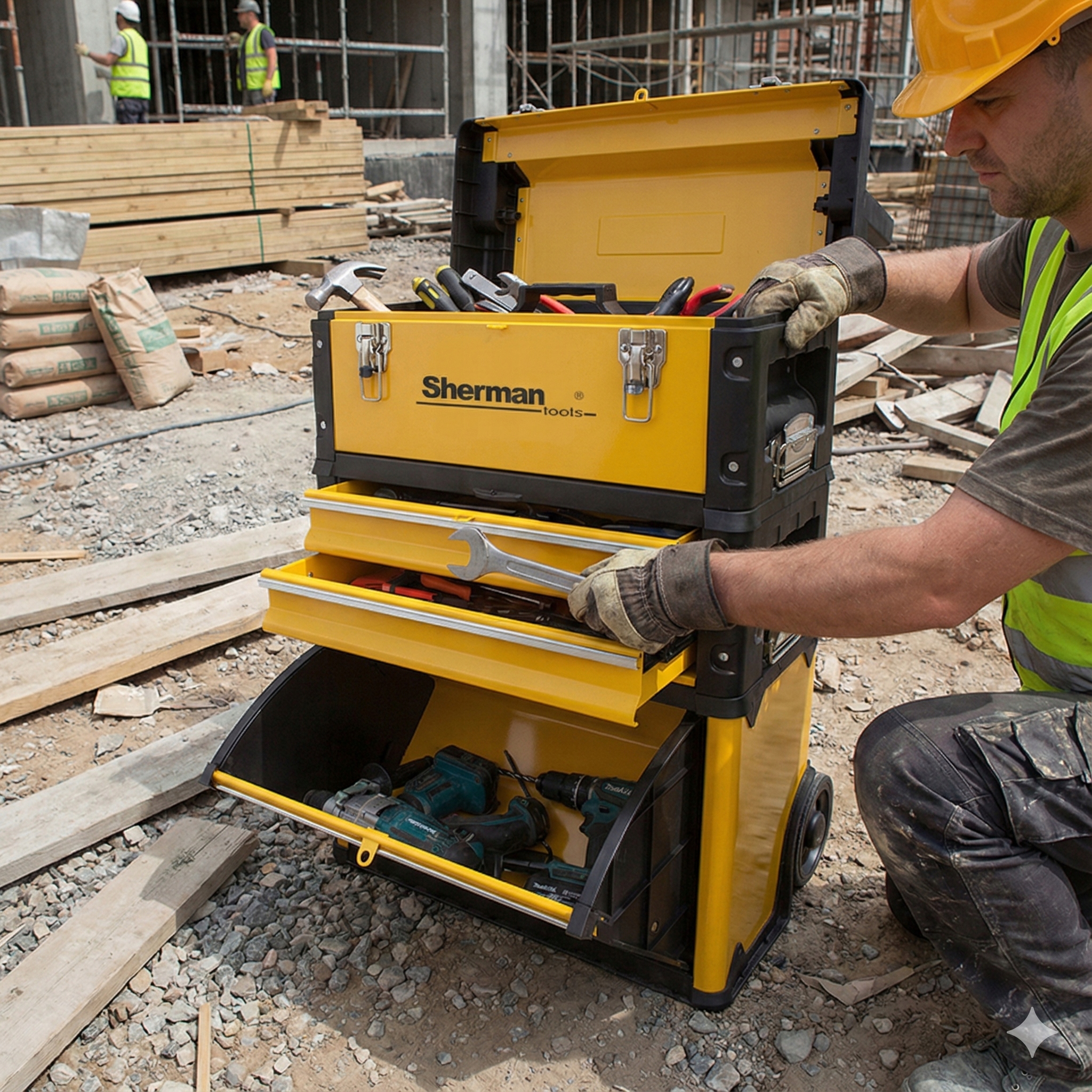 ЧЕМОДАН НА ТЕЛЕЖКЕ ДЛЯ ИНСТРУМЕНТОВ, КОРОБКА ДЛЯ МАСТЕРСКОЙ - SHERMAN 3в1