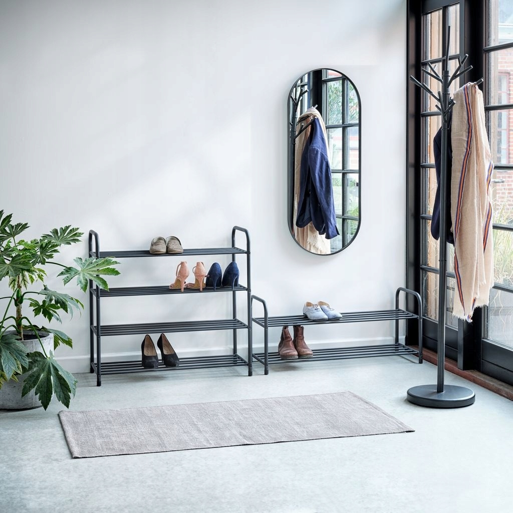 - Красивая, стильная черная полка для обуви.