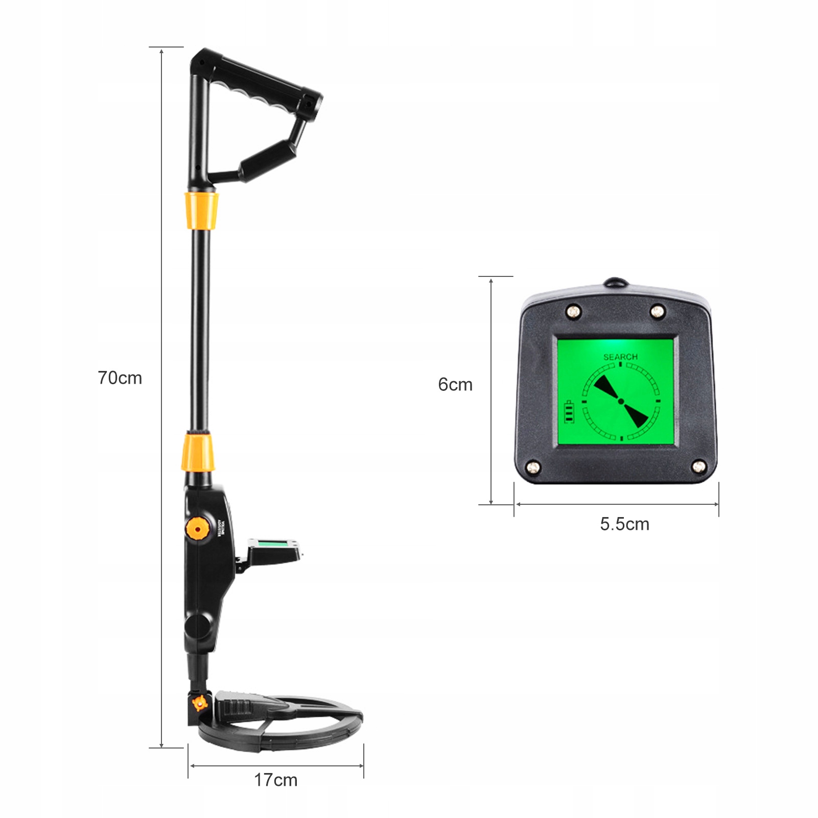 - Регулируемая чувствительность и громкость: легко контролировать уровень чувствительности детектора с помощью ручки управления. Вы также можете регулировать громкость динамика при поиске потерянных монет, украшений и других металлических предметов.