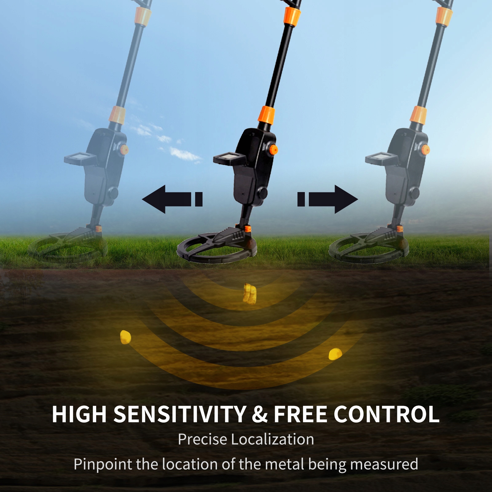 3. Регулируемая чувствительность\U0026 Громкость: Легко управлять детектором\U0027S Уровень чувствительности с помощью ручки управления. Вы также можете настроить уровень громкости при поиске потерянных монет, украшений и других металлических предметов.