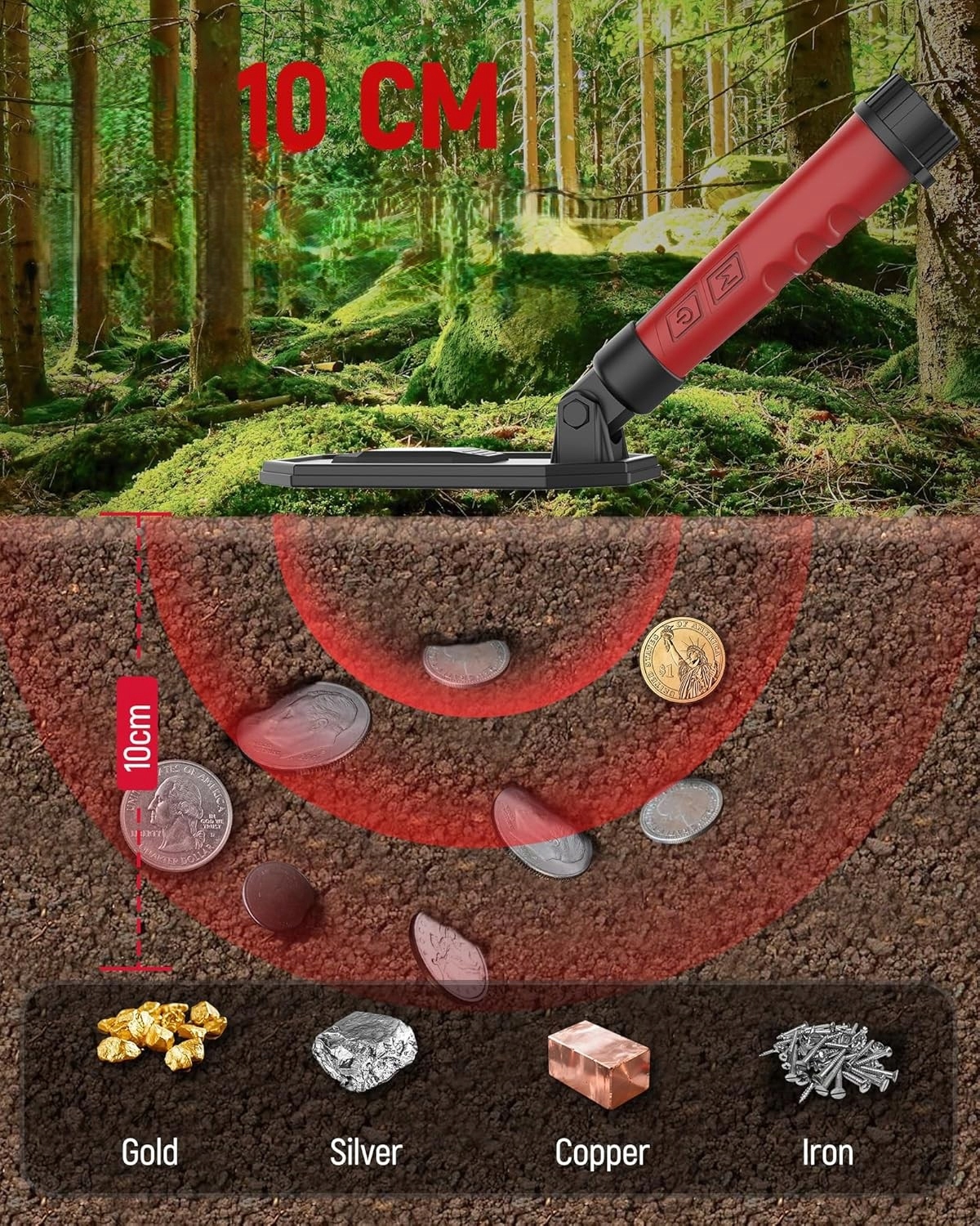 - 【Инновационное шумоподавление】В нашем металлодетекторе используется технология импульсной индукции, также известная как металлодетектор PI, которая посылает сильноточные сигналы через медную катушку, генерируя электромагнитные поля. По сравнению с непрерывными волнами (ОНЧ), излучаемые индуктивные сигналы сильнее и более устойчивы к помехам в подводной среде и высокоминерализованных грунтах.