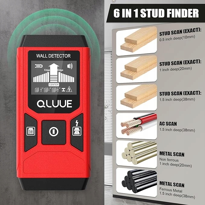 6 в 1 режиме сканирования с расширенными инородными телами, обнаружающими технологию (деревянный режим, 3 режима с глубиной 10 мм/20 мм/38 мм доступны), металлический режим обнаруживает трубы с глубиной 38 мм и стальных стержней и и стальные Необогатные металлы могут иметь глубину до 20 мм, в то время как режим переменного тока может обнаружить кабели на глубине 38 мм