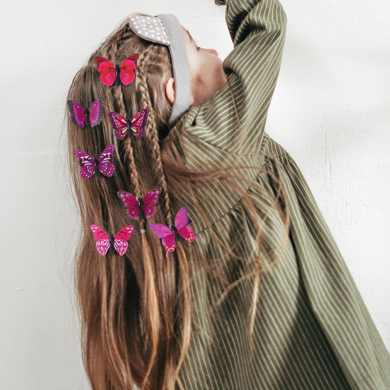 ✅Эта заколка для волос изготовлена из ПВХ и железа, имеет яркие цвета и четкий узор. С его помощью можно закрепить челку или лишние волосы и сделать красивую прическу. Красивые бабочки в ваших волосах выделят вас и подарит хорошее настроение на весь день.