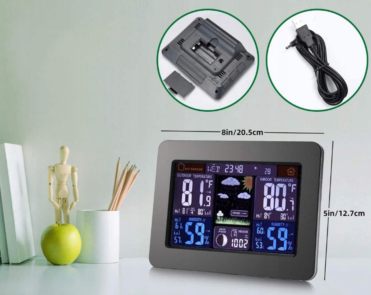 ✔️ Современный дизайн станции позволяет ей идеально вписаться в любой интерьер - ее можно разместить на столе, полке или повесить на стена. Красочный дисплей с подсветкой – это не только удобно, но и украшение любого помещения.