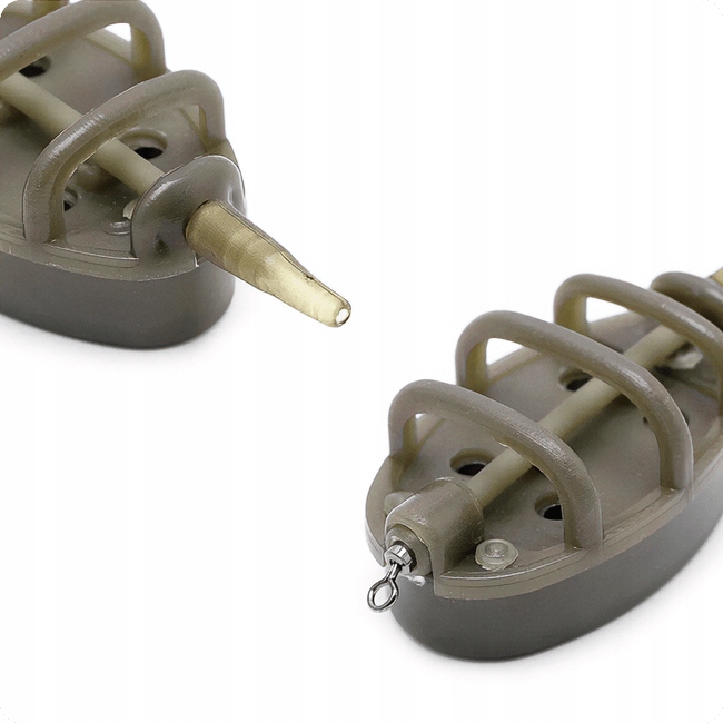 При забросе оснастки у наживки нет шансов запутаться, поскольку крючок спрятан. б> в корзине для приманок. Такое решение гарантирует безопасную и эффективную ловлю, исключая проблему запутывания при забросе