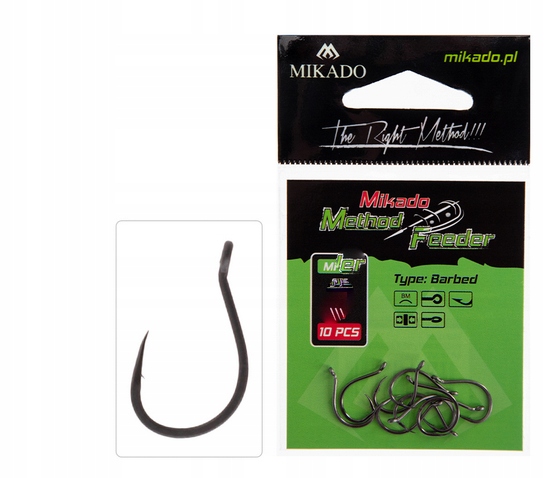 КРЮЧОК ДЛЯ МЕТОДНОЙ КОРМУШКИ - MF13 № 4 - С БАРБЕРОМ - упаковка 10 шт. МИКАДО HMF13-04