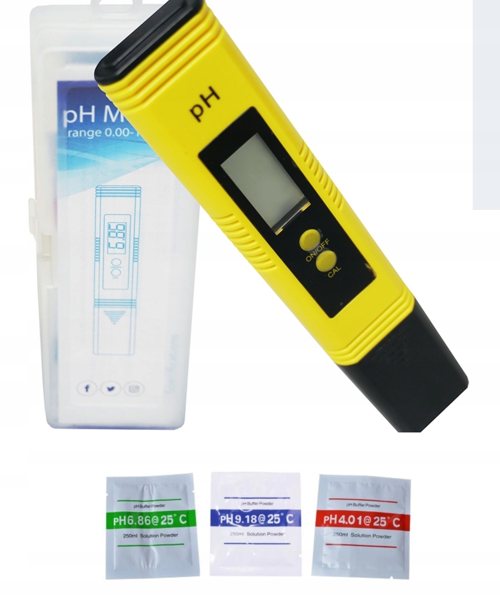 Простой в использовании pH-метр, электронная калибровка с помощью кнопок — отвертка не требуется. В комплект входят 3 буфера и батареи.