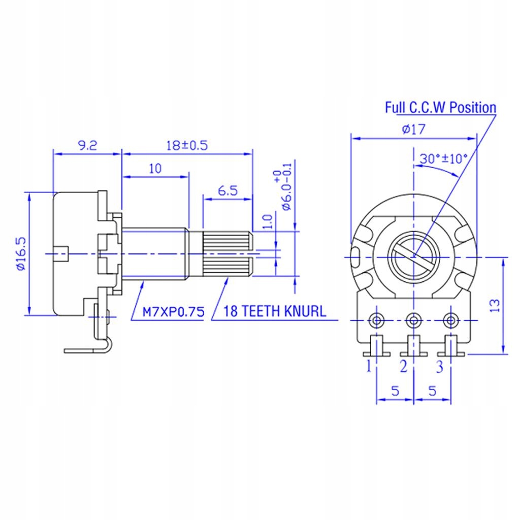 Метрические полноразмерные гитарные потенциометры с разъемным валом диаметром 18 мм A500K и B500K