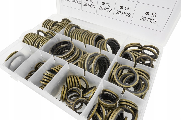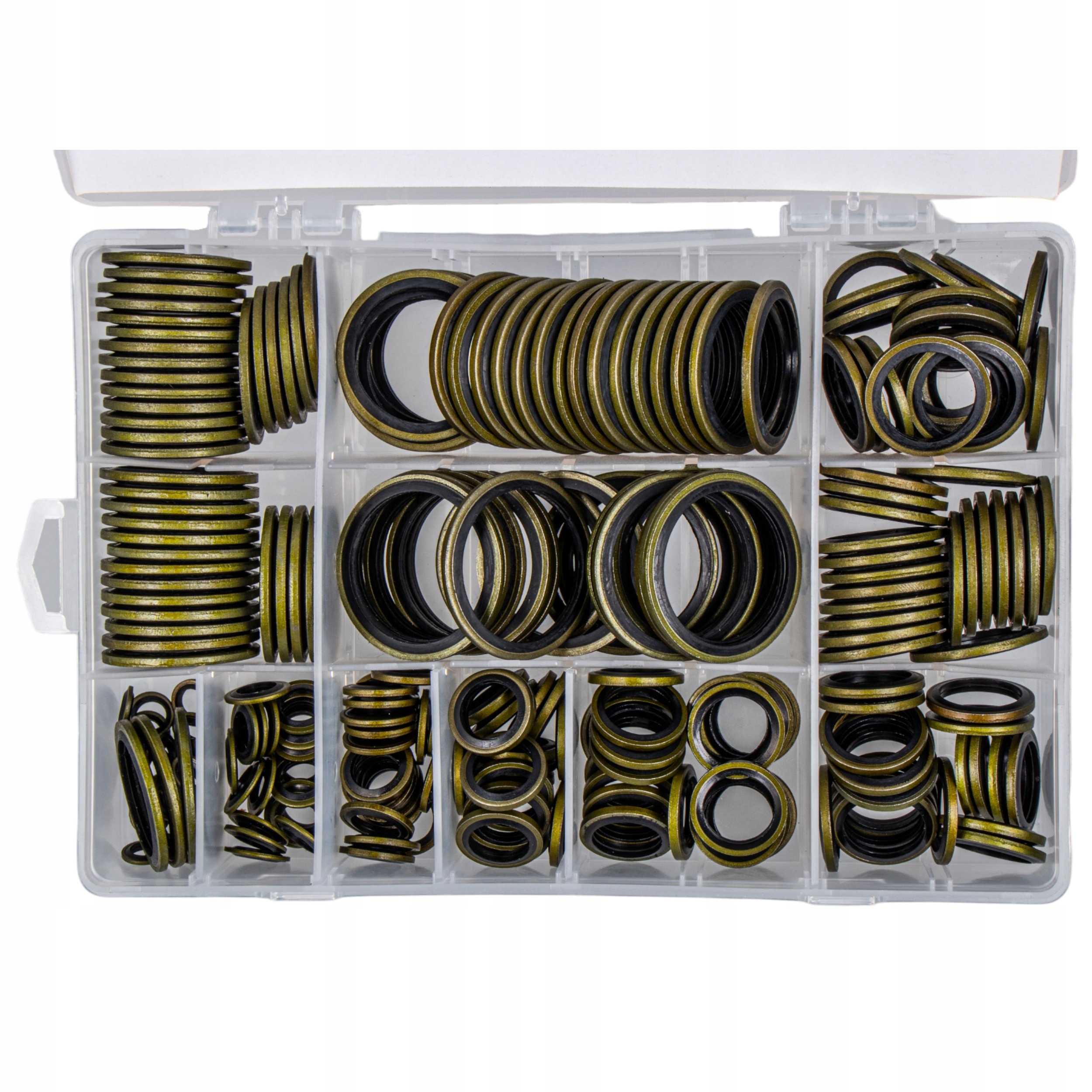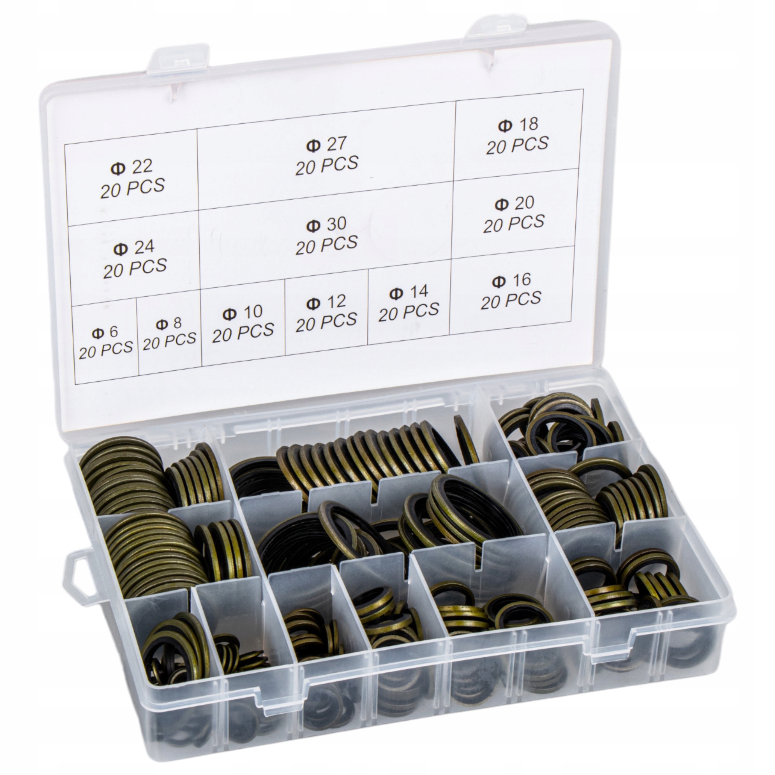 метрические алюминиевые прокладки 300 шт. Полезно в каждой автомобильной мастерской. В целом упаковано в удобную пластиковую коробку с отсеками, обеспечивающими порядок и надлежащие размеры.