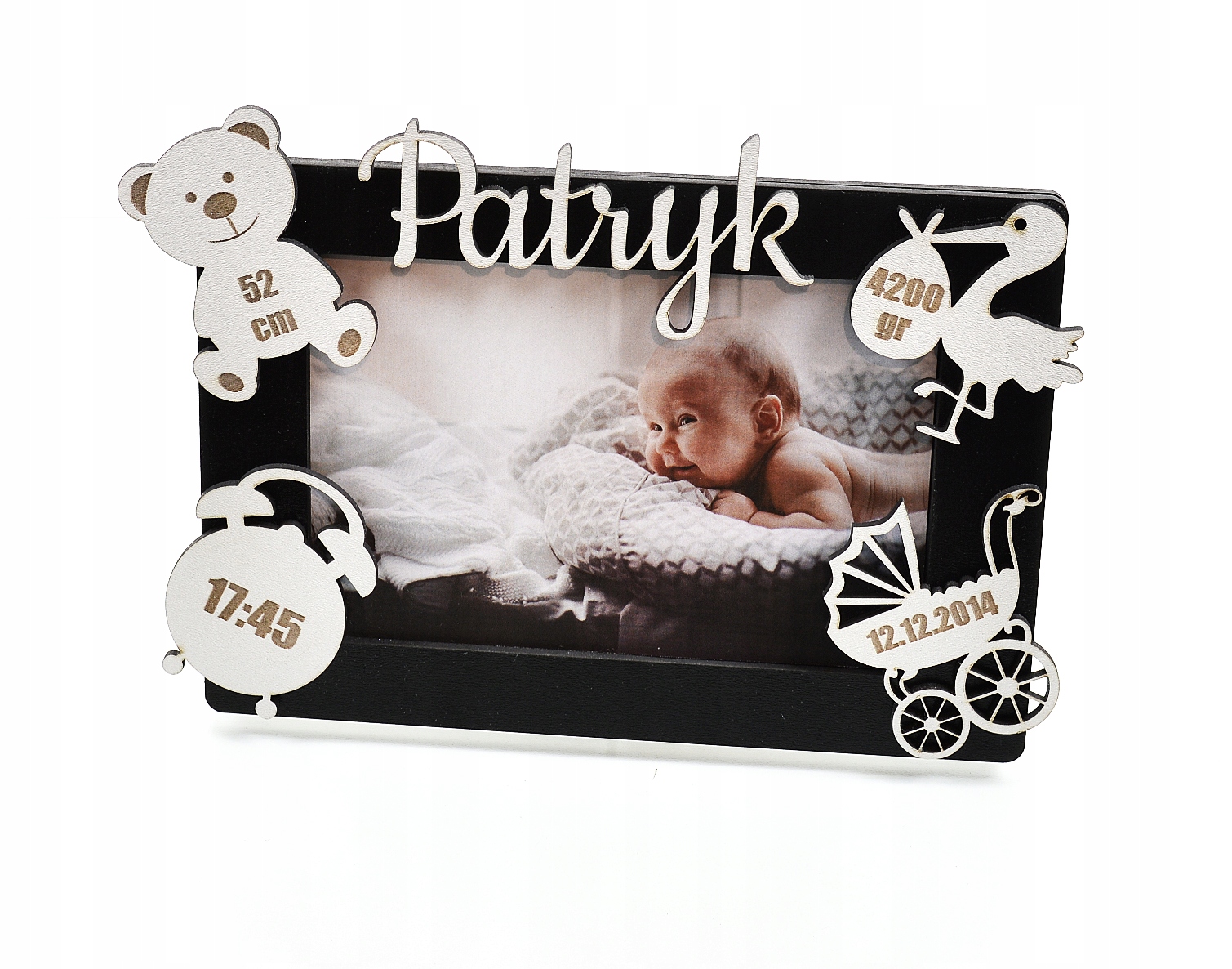 На следующем аукционе мы представляем деревянную фоторамку формата 15х10 с именем ребенка и свидетельством о рождении. Это идеальный подарок на рождение ребенка, юбилей, день рождения или на память о крещении. Рамку отличают выпуклые наклеенные элементы с гравировкой свидетельства о рождении ребенка!