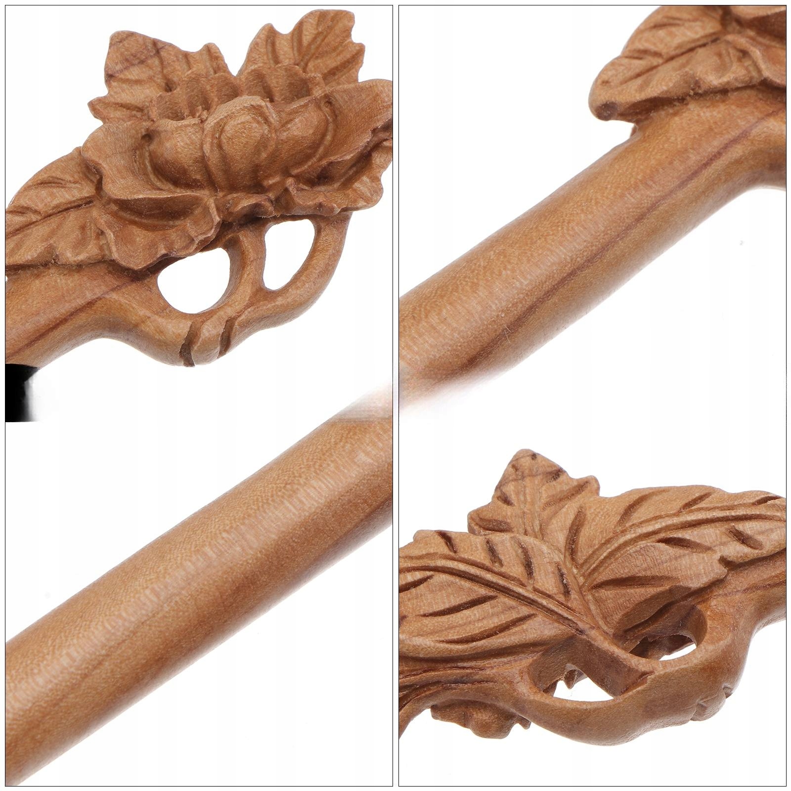 ПРОЧНАЯ ДЕРЕВЯННАЯ ПЛОЧКА ДЛЯ ВОЛОС С ДЕКОРАТИВНЫМ ЦВЕТКОМ ПИОНА