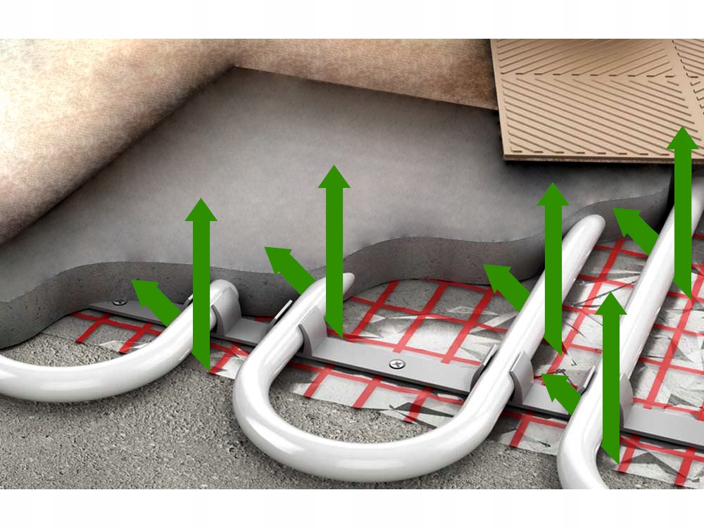 Фольга защищает пенополистирольные плиты от проникновения влаги, содержащейся в бетонной массе, а также самой бетонной массы при устройстве стяжки. Кроме того, он поддерживает полистироловые плиты для правильного крепления монтажных зажимов к трубам теплого пола.