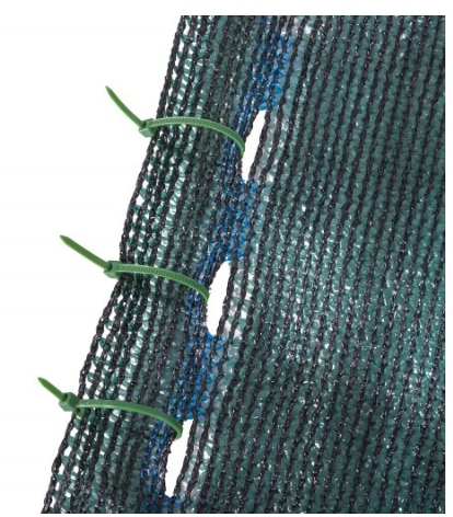Протяните стяжки через проушины на краю сетки и прикрепите к столбу забора, стальному тросу, заборной сетке, панелям или другой конструкции.