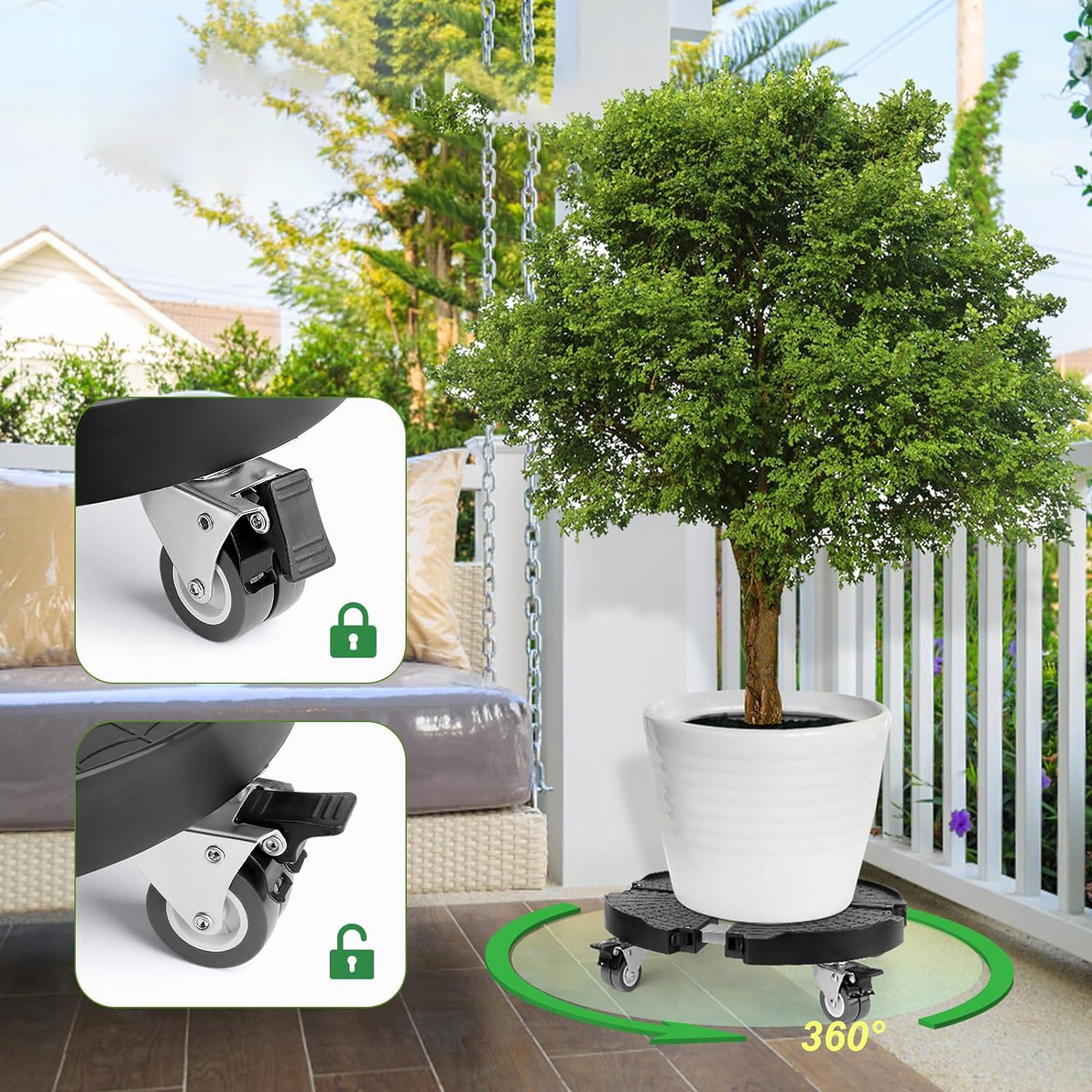 ПРОЧНАЯ ПОДСТАВКА ДЛЯ ЦВЕТОЧНЫХ ГОРШКОВ С ПОВОРОТНЫМ НА 360° КОЛЕСИКОМ, РЕГУЛИРУЕМАЯ, ДИАМЕТР 35-48 СМ