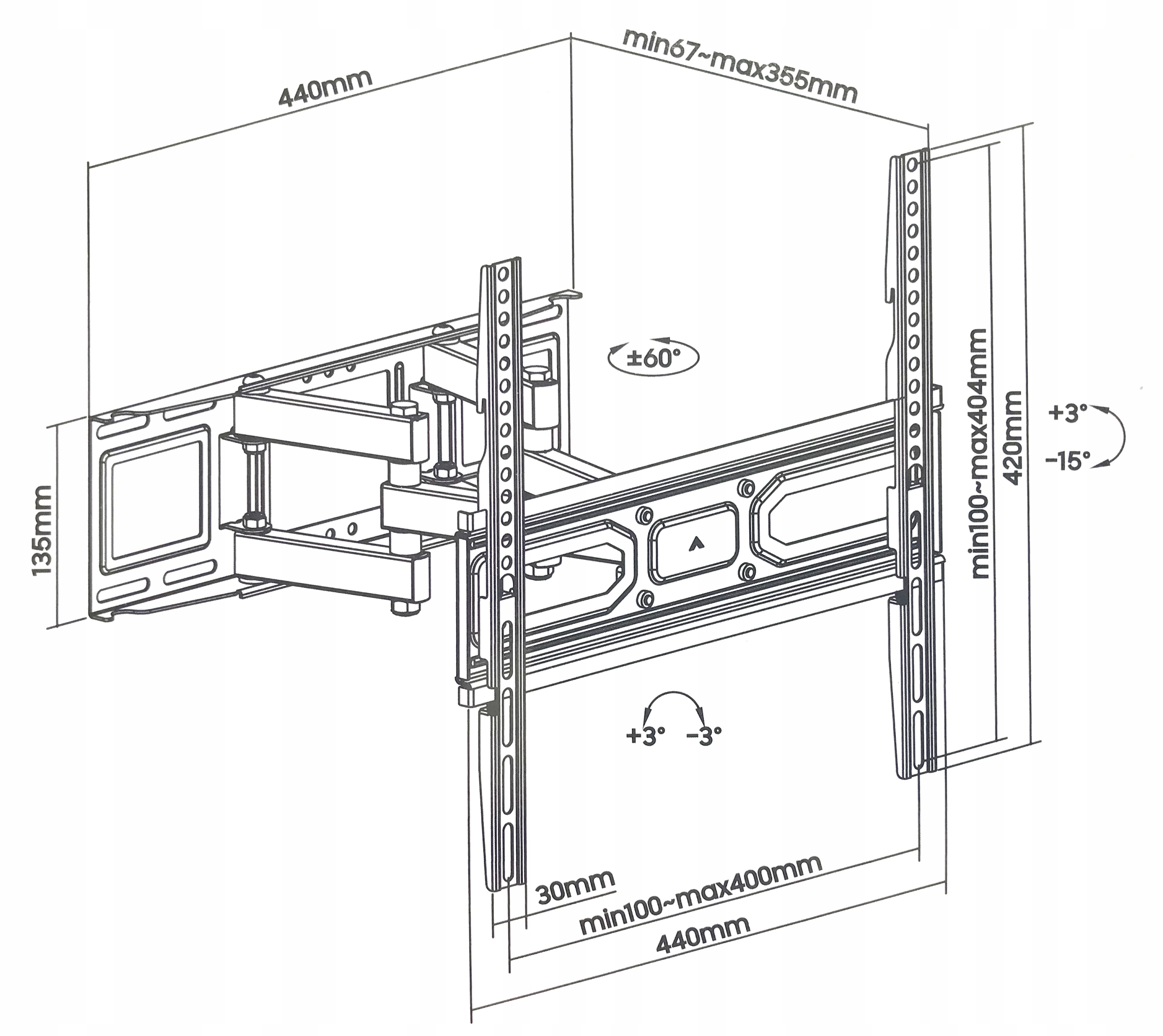 - Регулировка угла наклона (по вертикали): +3/-15 градусов