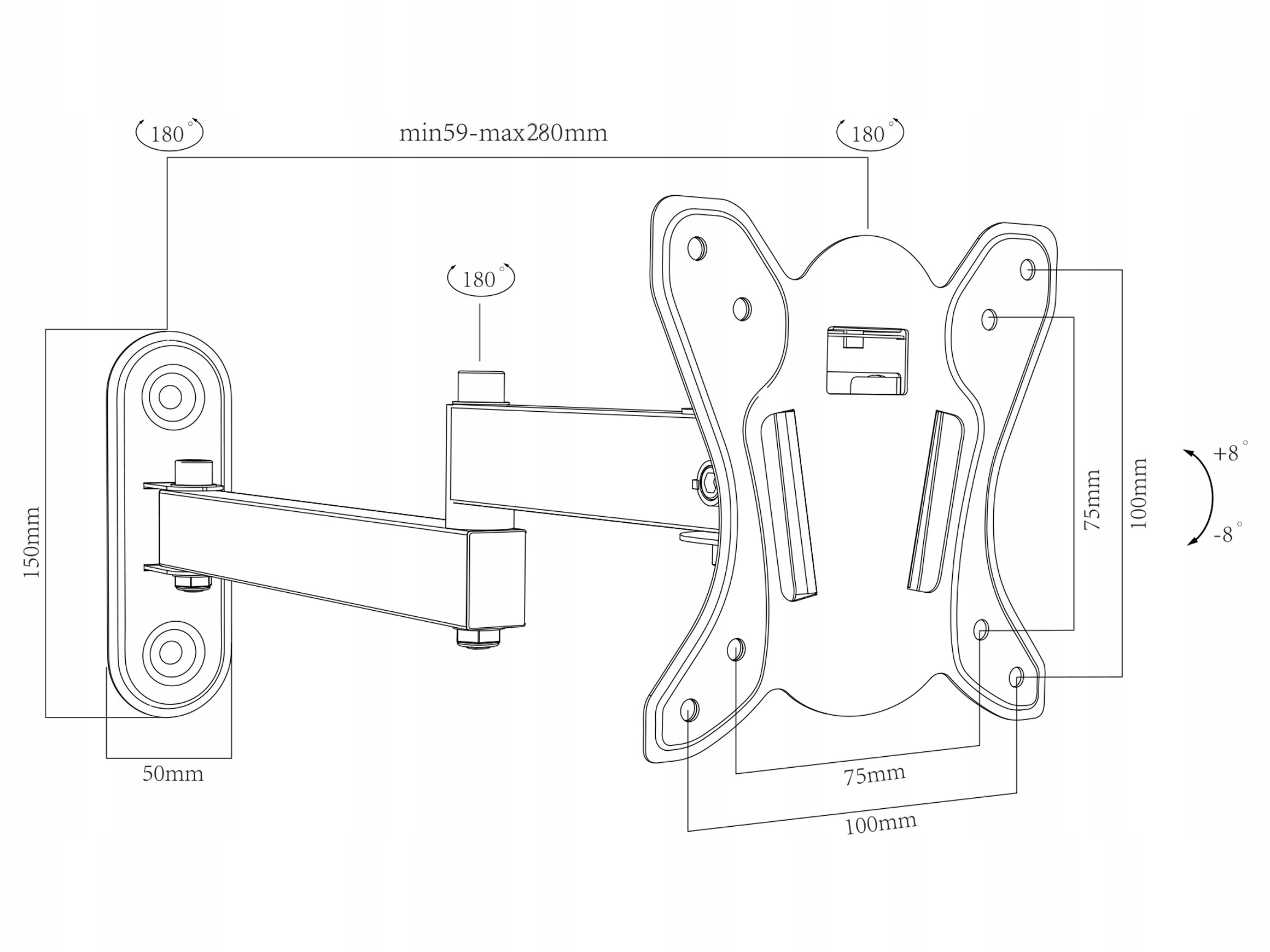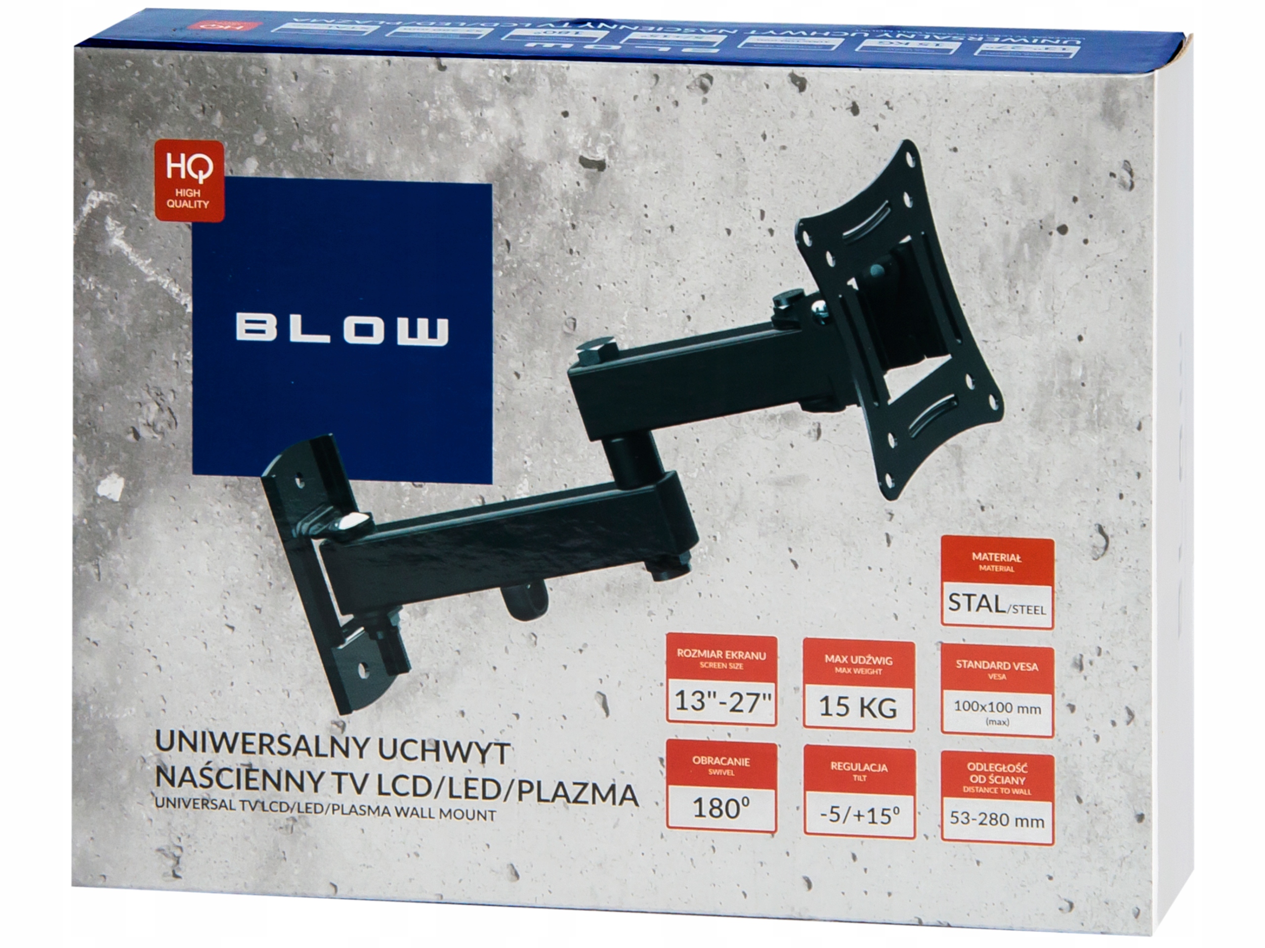 Настенное крепление BLOW было создано с учетом безопасности и универсальности. С помощью этой компактной вешалки мы можем повесить телевизор или монитор практически на любую вертикальную стену. Ручка позволяет легко регулировать наклон панели от +5° до -15 и угол поворота до 180 градусов.