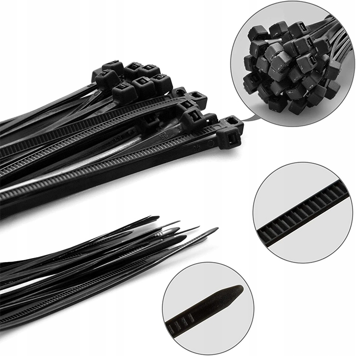 ✅ 100× ЗАЖИМЫ STRONG 7,6x400 ММ – ЧЕРНЫЕ