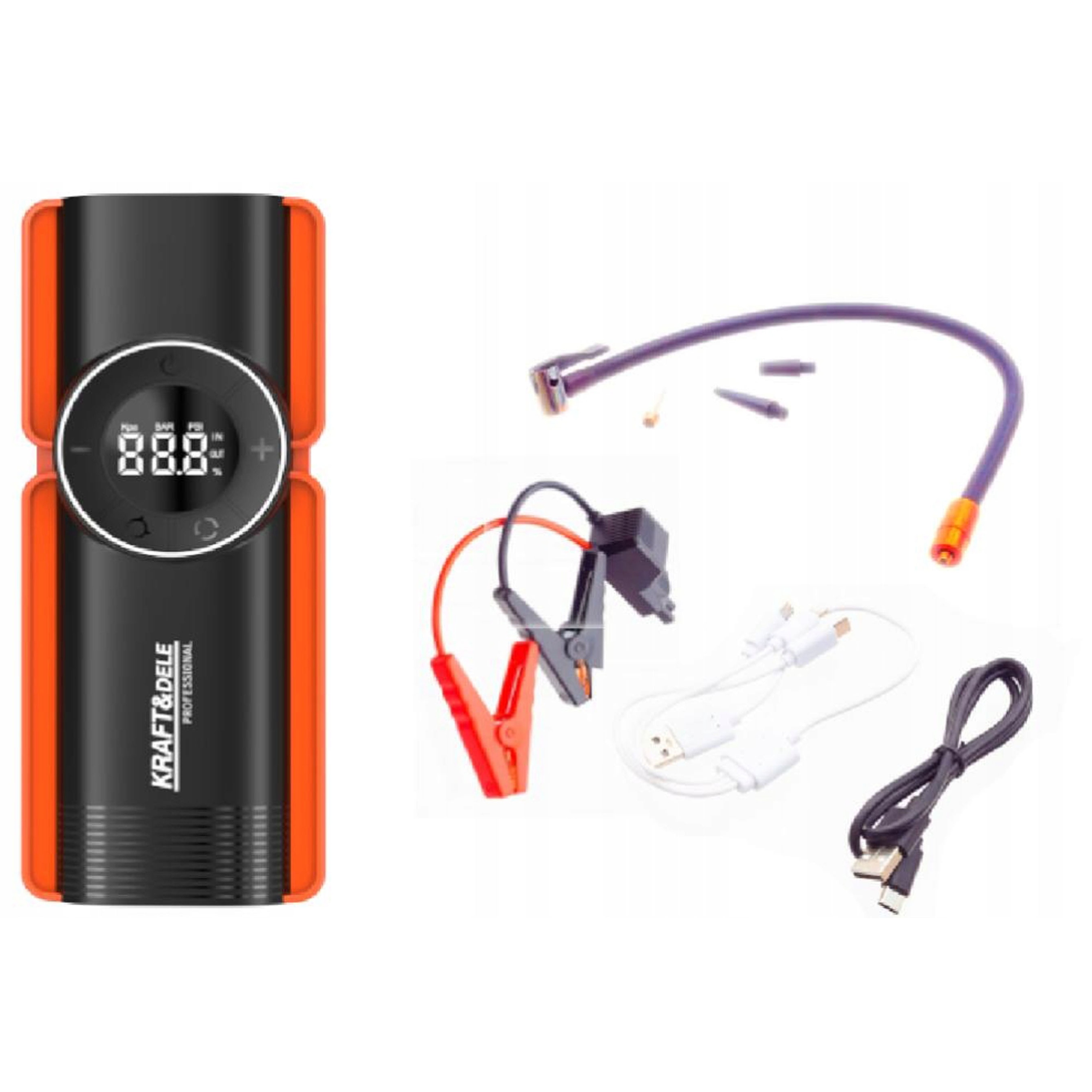 Встроенный насос — это интеллектуальный инструмент, позволяющий быстро и точно накачивать шины, мячи или инвентарь для отдыха. Благодаря ЖК-дисплею можно установить точное значение давления, при его достижении прибор автоматически отключится. Вам не придется беспокоиться о перегрузке или слишком высоком давлении – все работает с полной точностью. Функция турбонаддува обеспечивает эффективную накачку даже больших шин за короткое время. Kraft&Dele – это не только комфорт, но и безопасность, которая сопровождает вас на каждом километре.