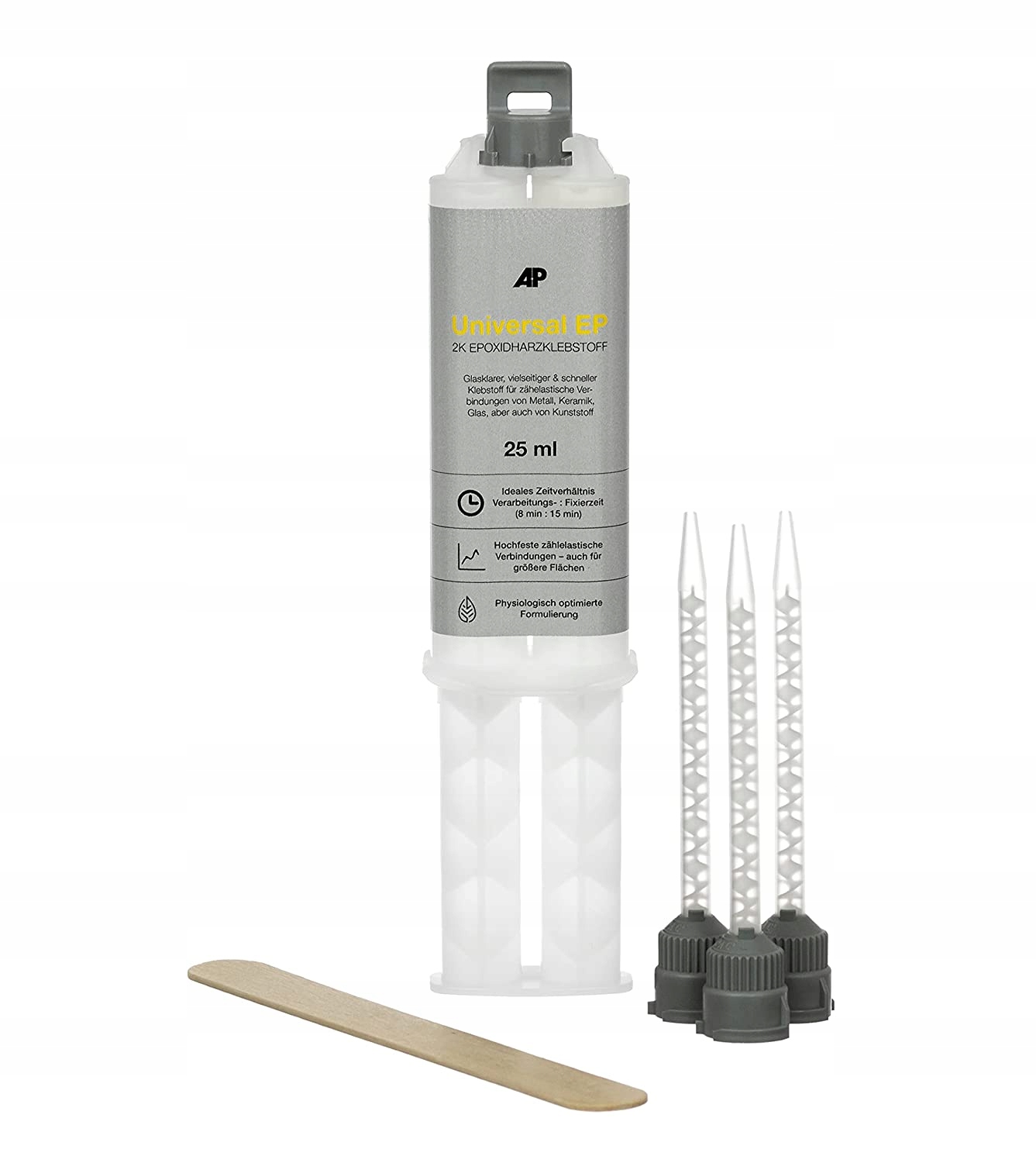 Клей Universal EP - Universal EP - это современный двухкомпонентный эпоксидный клей. . Это идеальная основа для широкого спектра клеевых применений. Прочное гибкое соединение – также для больших поверхностей. КЛЕЙТЕ ПОЧТИ ВСЕ! Для идеального применения обязательно следуйте инструкциям по применению.