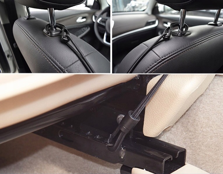 Верхние крючки крепятся к креплениям подголовника, а нижние – к элементам конструкции крепления сиденья.
