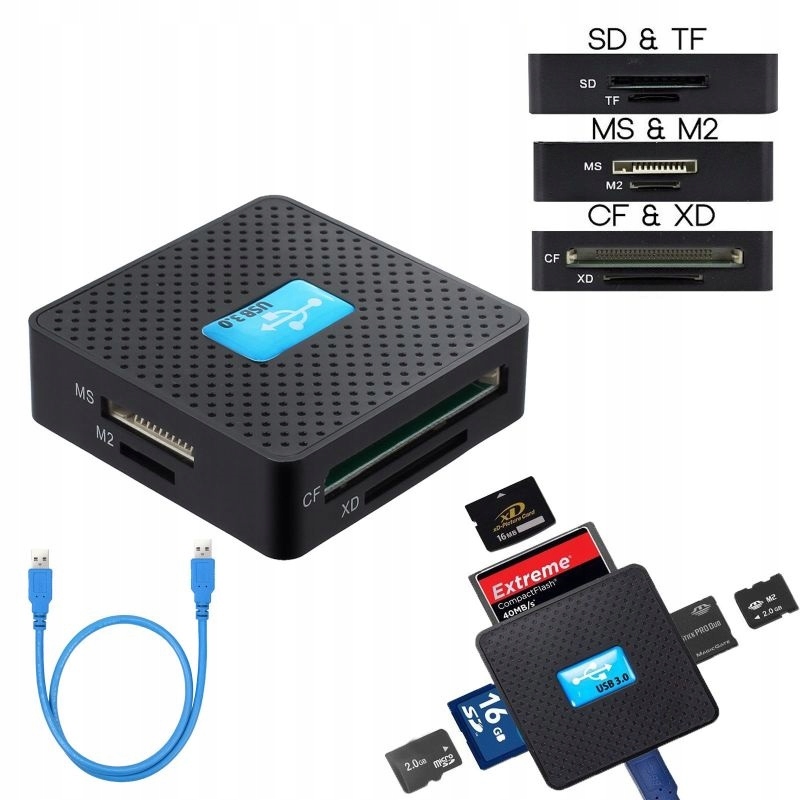 Все в одном Устройство чтения карт памяти MicroSD, SD, CF, XD, M2, MS, MMC через USB3.0.