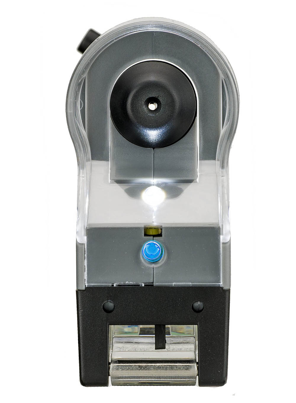 - Поместите слайд под объективом и открыть новую подготовку или записи с фотографиями или записи с фотографиями или записи с фотографиями или записи с фотографиями или записи с фотографиями или записи. Микроскоп имеет встроенный ультрафиолетовый фонарик, который будет флуорировать образцы, от скорпионов, до слюны, до ложных денег, а не только