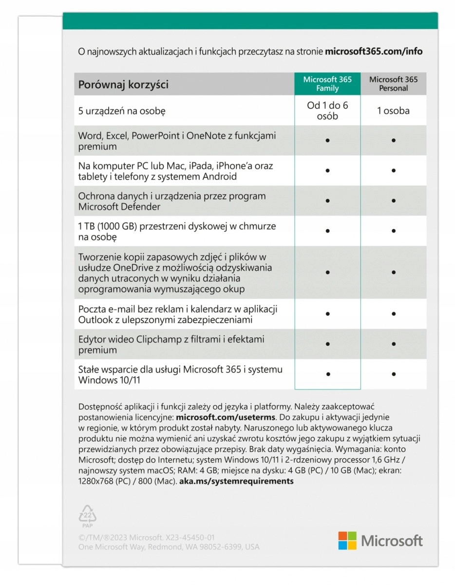 Оплачивая «Microsoft Office 365 Family 6 користувачів 1 рік PL BOX», вы можете быть уверены, что данное изделие из каталога «Офисные пакеты» будет доставлено из Польши и проверено на целостность. В цене товара, указанной на сайте, учтена доставка из Польши. Внимание!!! Товары для Евросоюза, согласно законодательству стран Евросоюза, могут отличаться упаковкой или наполнением.