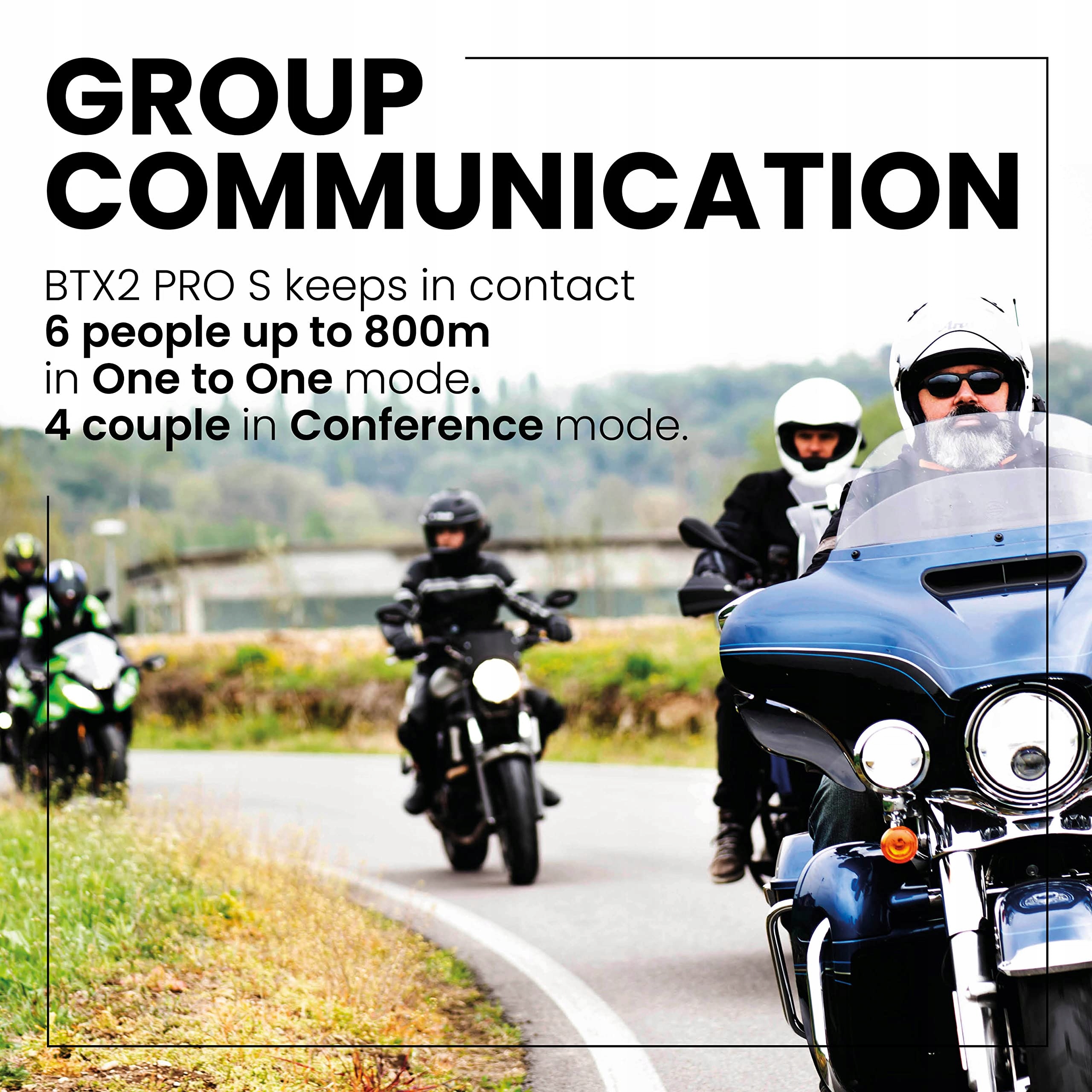 ВСЕ В ОДНОМ: для проведения конференций между мотоциклами между 4 парами (8 человек), до 6 человек в режиме «Один-к-одному»; все в полнодуплексном режиме с цифровым качеством и DSP для шумоподавления