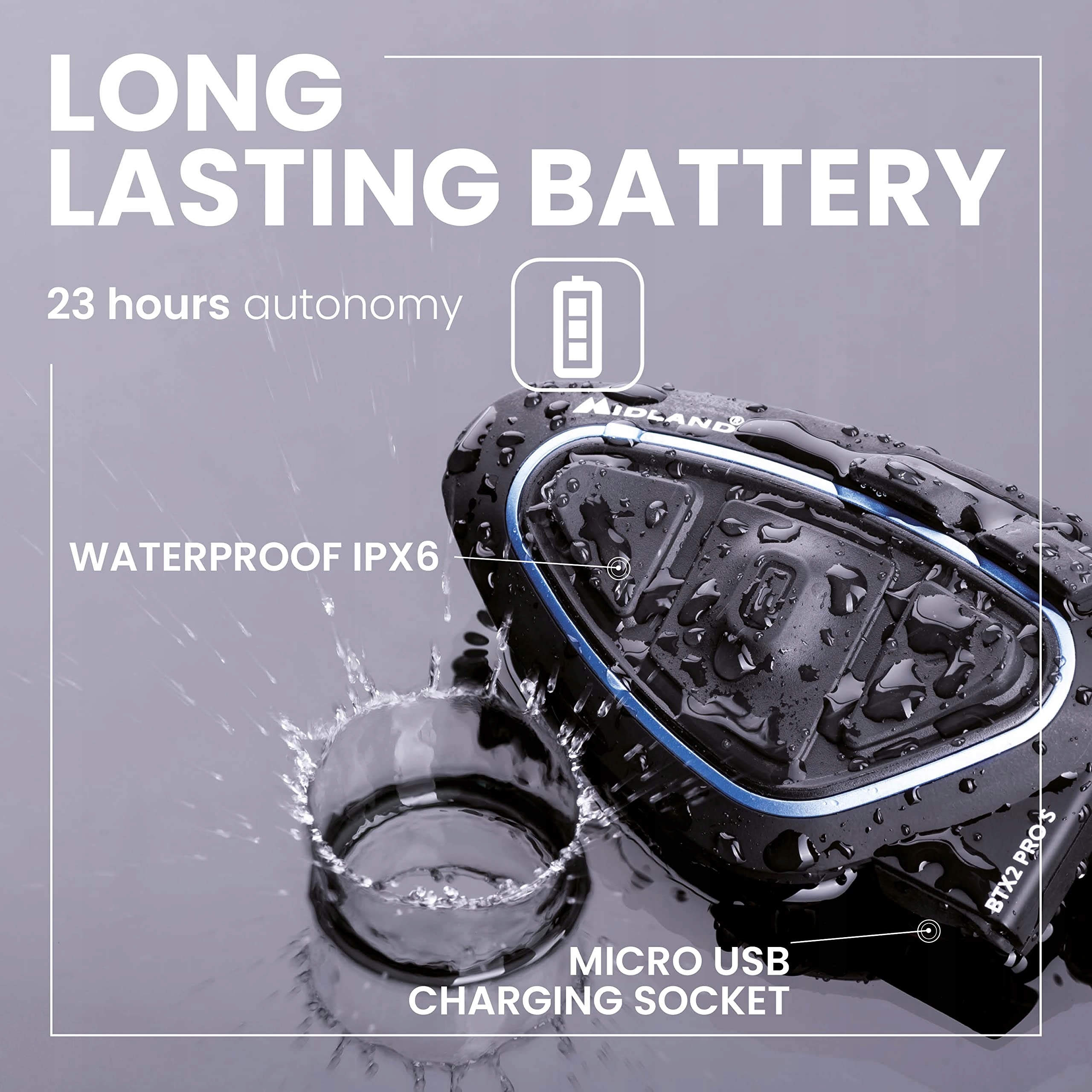 Midland — мотоциклетный домофон BTX2 Pro S, одинарный, водонепроницаемый шлем IPX6, синий цвет