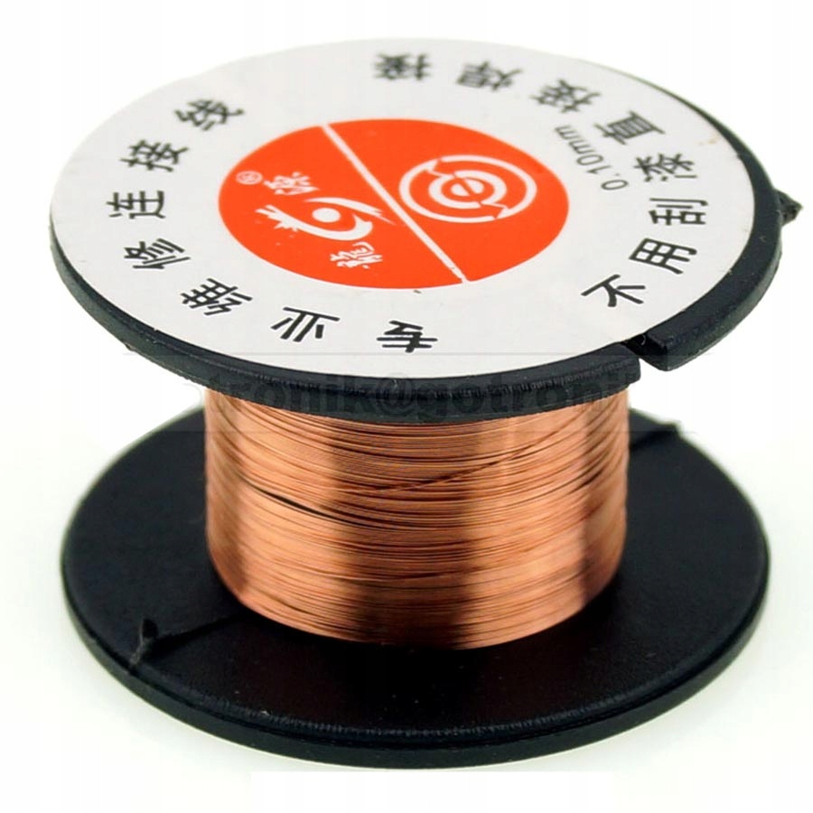 Медная проволока на катушке (мотке) используется для ремонта дорожек на печатных платах, соединения элементов и т.п. Преимуществом медной проволоки является ее гибкость и термостойкость. Медная проволока легко паяется с использованием стандартного оловянного сплава, используемого инженерами-электронщиками. Благодаря небольшому диаметру (0,1 мм) его можно использовать при ремонте смартфонов, мобильных телефонов, ноутбуков и материнских плат ПК.