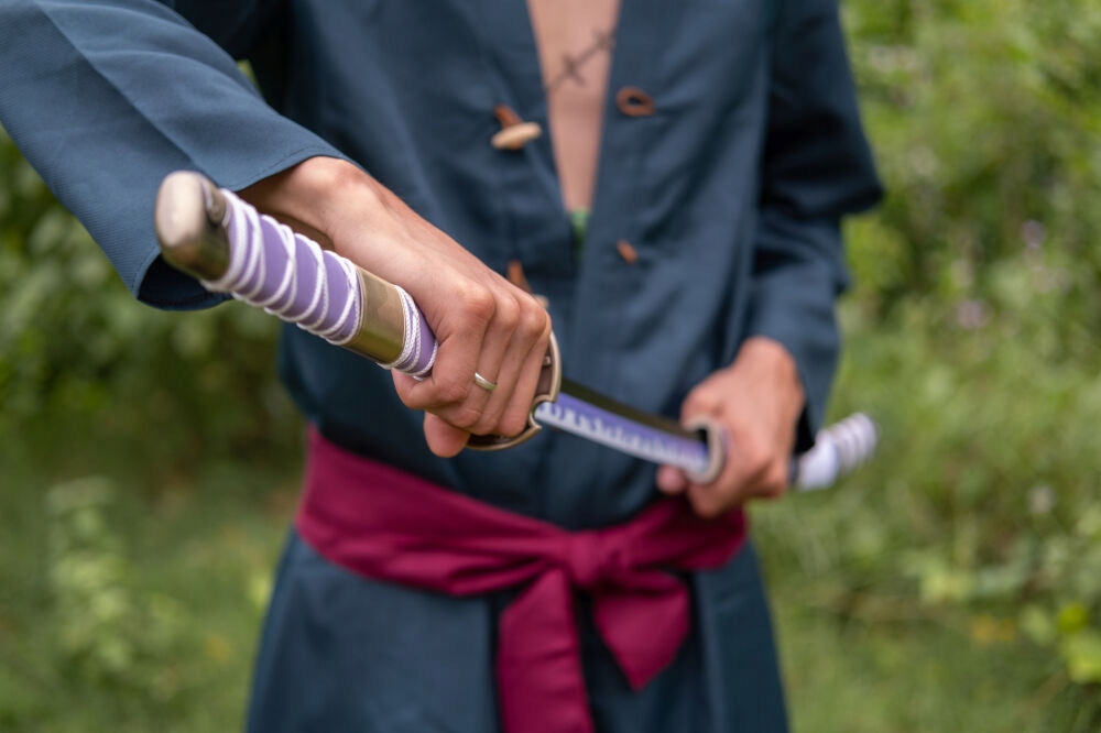 ✅ МАТЕРИАЛ - Материал лезвия этой катаны Ророноа Зоро изготовлен из бамбукового дерева. Ножны и ручка изготовлены из твердого пластика