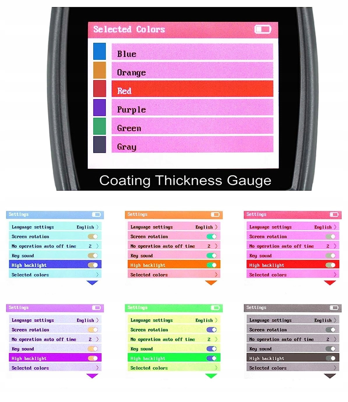 Толщиномер покрытия с цветной и поворотный дисплей высокого разрешения, память измерений и диаграмм.