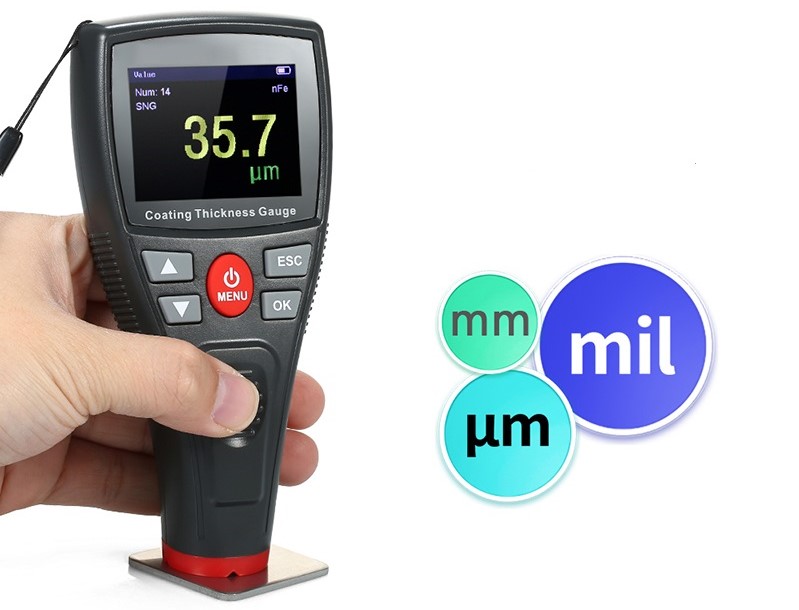 Профессиональный прибор для быстрого и точного измерения толщины немагнитного покрытия на поверхности магнитной металлической подложки и неметаллическое покрытие на немагнитной металлической подложке. Продукт широко используется в химической и металлургической промышленности, при контроле качества товаров, особенно в автомобильной промышленности и во многих других областях. Прибор оснащен цветным дисплеем высокого разрешения (HD)