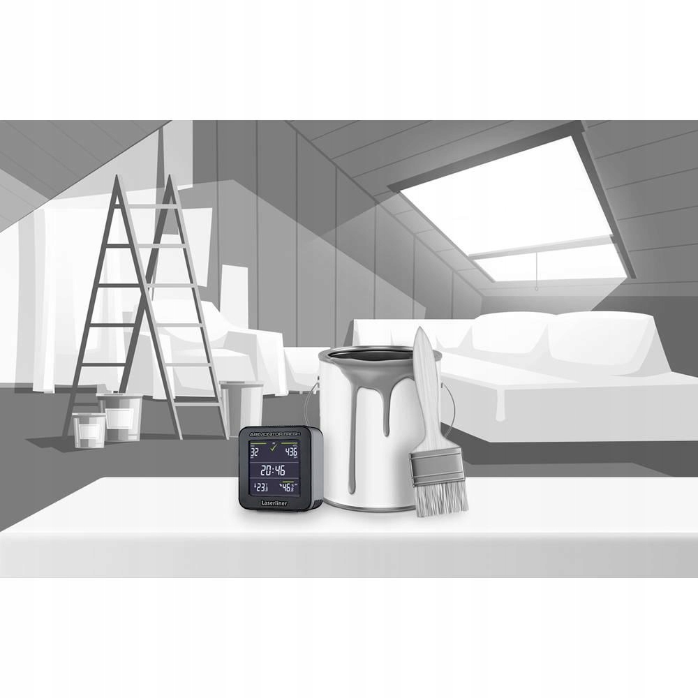 Этот прибор для измерения летучих органических соединений со швейцарским прецизионным датчиком от производителя Sensirion определяет и оценивает концентрацию летучих органических соединений (ЛОС). Изделие отображает рассчитанное содержание eCO₂, влажность, температуру и время. В случае высоких концентраций ЛОС и eCO₂, оказывающих негативное влияние на самочувствие и здоровье, пользователь получает рекомендации по вентиляции на цифровом дисплее, а также оптический и акустический сигнал, который можно отключить. Это обеспечивает эффективную защиту здоровья от загрязнения воздуха помещений летучими органическими соединениями даже при использовании чистящих средств, лаков, красок и пластмасс, а также при таких работах, как малярные и пескоструйные работы.