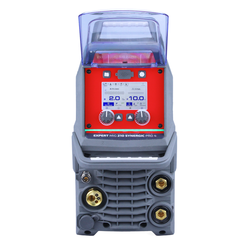 EXPERT MIG 210 SYNERGIC Pro4 LCD — инверторный, синергетический и многофункциональный сварочный источник, предназначенный для дуговой сварки методами MIG/MAG, FLUX, TIG LIFT. . b> и метод ММА (покрытый электрод). Аппарат предназначен для широкого спектра применений: от работ по техническому обслуживанию, сварки металлоконструкций до кузовного ремонта автомобилей.