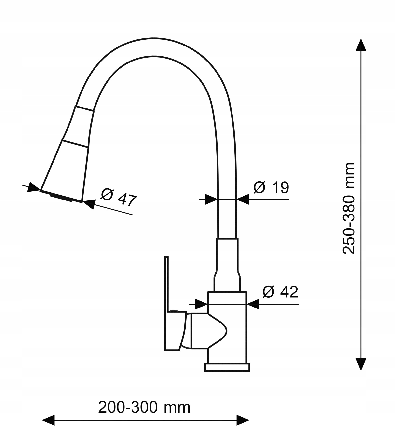 ✅ Длина излива: 23-32 см