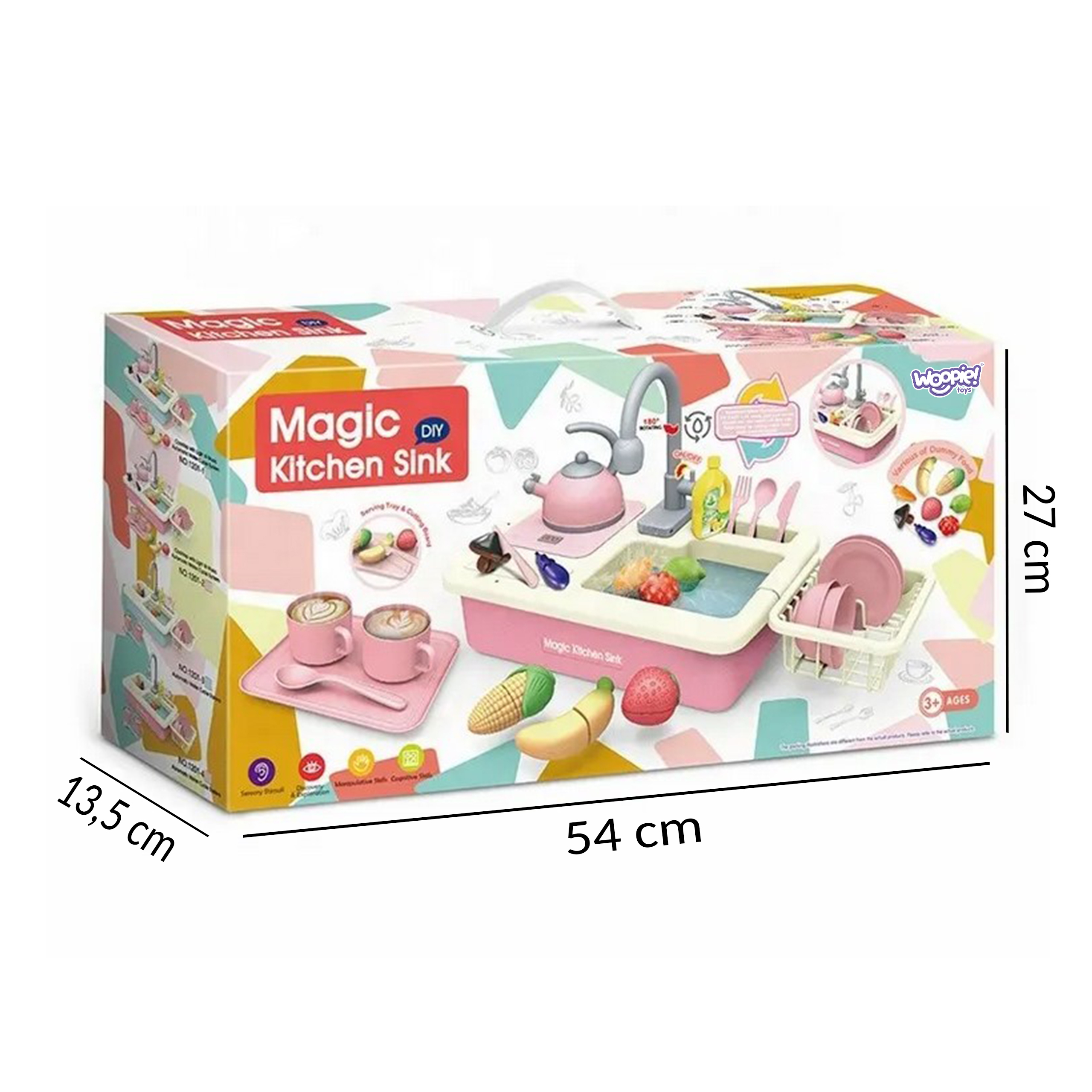 sind 2in1 от бренда Woopie позволит детям готовить и мыть в качестве родителей - имитация с раннего возраста! Игрушка прекрасно воспроизводится , благодаря тому, что у ребенка сложилось впечатление, что он выполняет реальные кухонные занятия. Он имеет движущиеся элементы , как крана, из которого настоящая вода летит . Просто налейте моду в миску и посмотрите, как играет ребенок, и в конце концов, просто опустошите нижнюю чашу. Кроме того, фрукты и овощи соединены липучкой, благодаря тому, что ваш ребенок может сократить их пополам, как настоящие продукты! Веселая приготовление пищи, мыть посуду и выполнять аналогичную работу, помогает детям получить чувство ответственности и независимость , что является важной частью социально-эмоционального обучения.