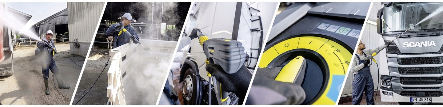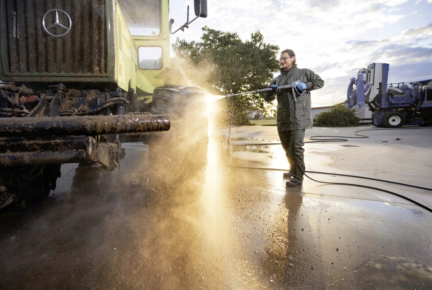 Стиральная машина представляет собой новый средний класс среди профессиональных стиральных машин Karcher. Его отличает автоматическая катушка для шланга и турбонасадка в стандартной комплектации.