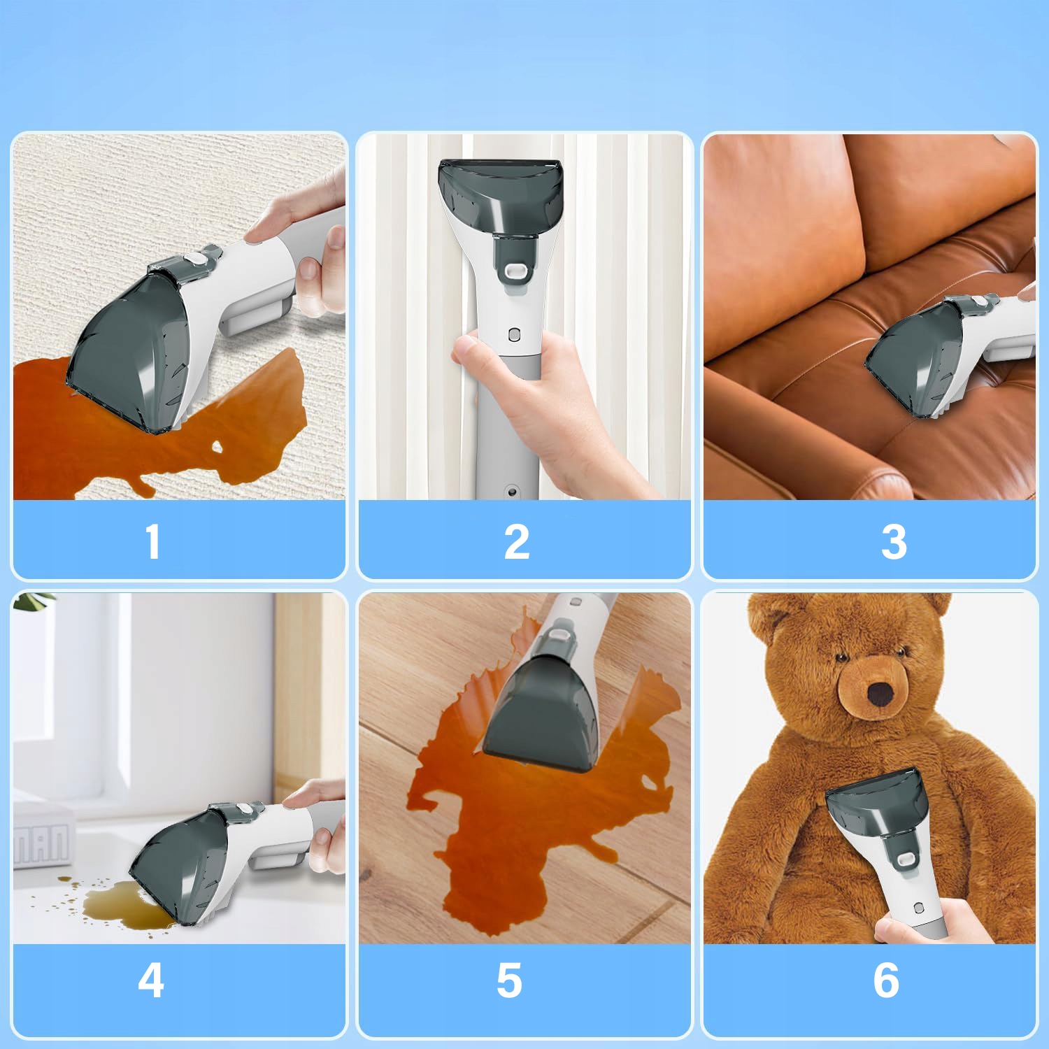✔️ Оснащенныймножественными насадками, его можно использовать для чистки ковров, лестниц, диванов, кроватей и т. д. в соответствии с вашими различными потребностями.