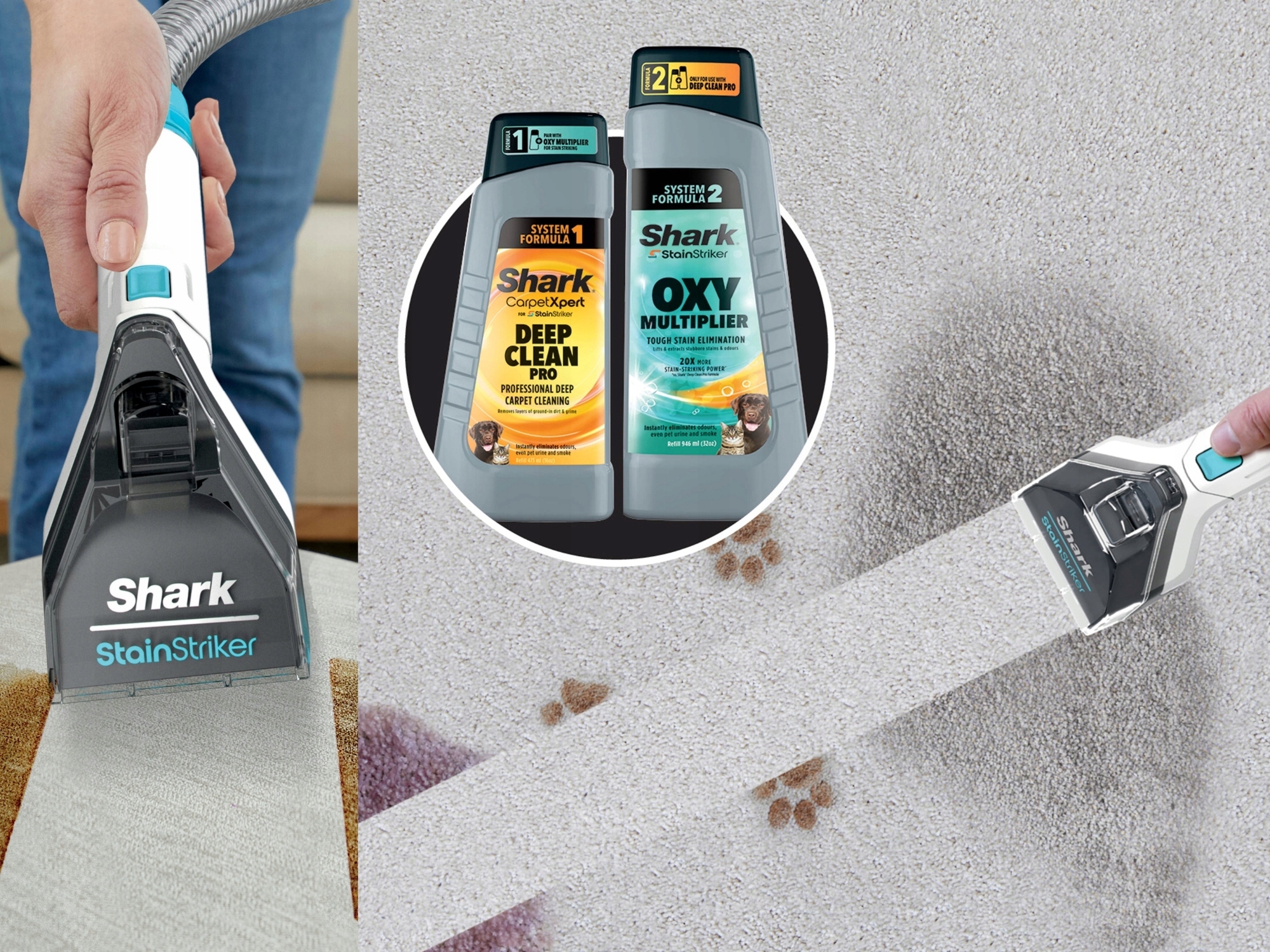 Познакомьтесь с Shark StainStriker — не имеющим себе равных в удалении пятен и неприятных запахов без необходимости предварительной обработки пятен.