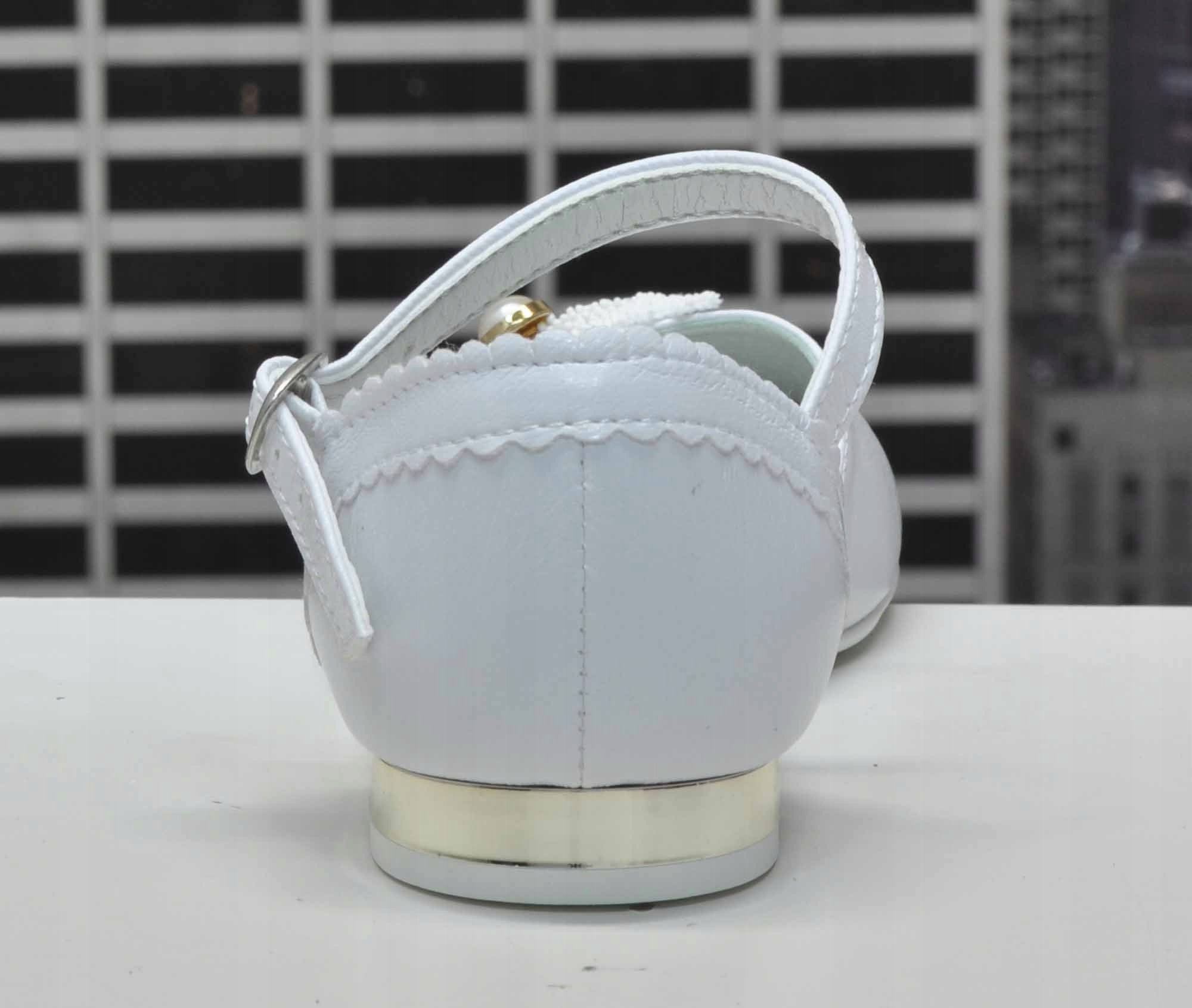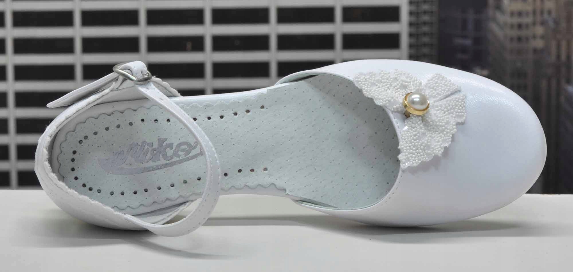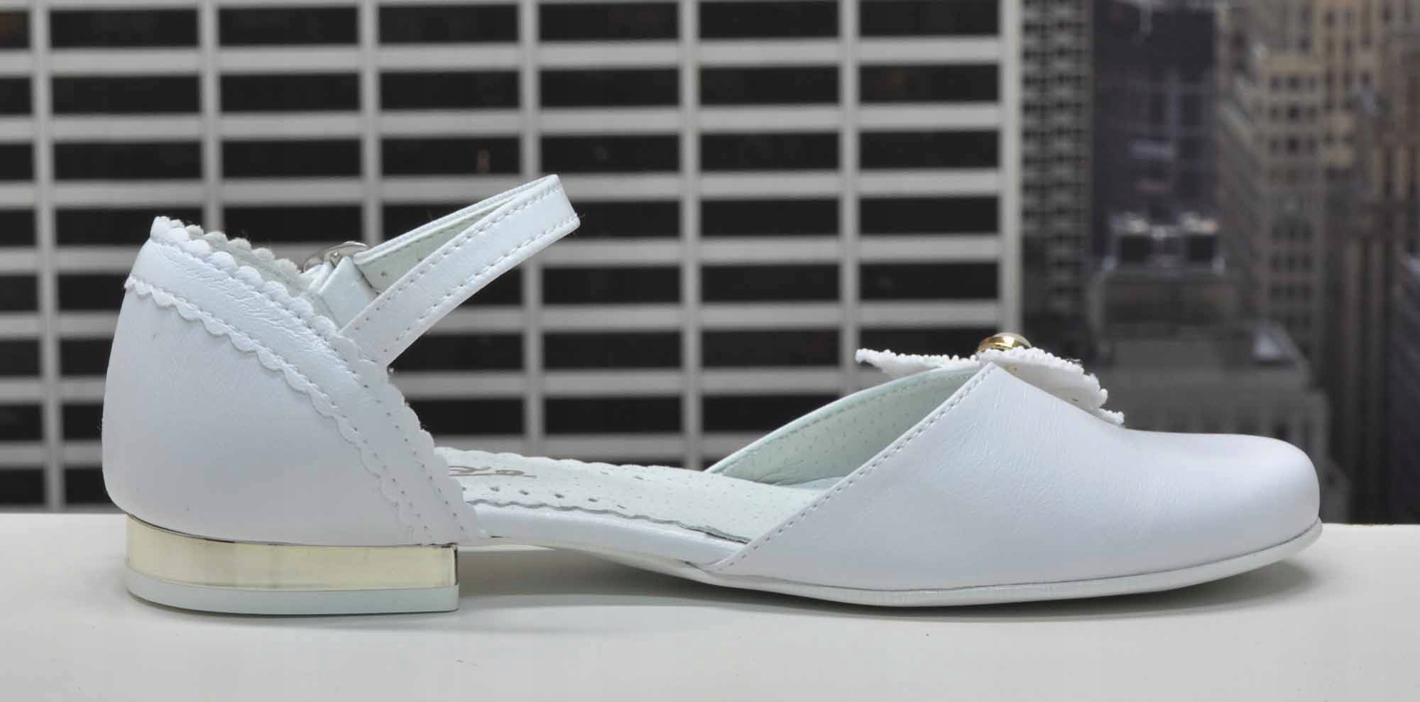 Обувь – незаменимый элемент наряда для причастия, сочетающий в себе элегантность и комфорт. Туфли застегиваются на классический регулируемый ремешок с пряжкой, гибкая подошва из TR, очень устойчивый и тонкий каблук, кожаная стелька. В целом обувь отличается высочайшим качеством. В конструкции обуви учтены не только комфорт и удобство использования, но и здоровье стопы ребенка. Соответствующая высота и жесткий каблук удерживают ногу в нужном месте.