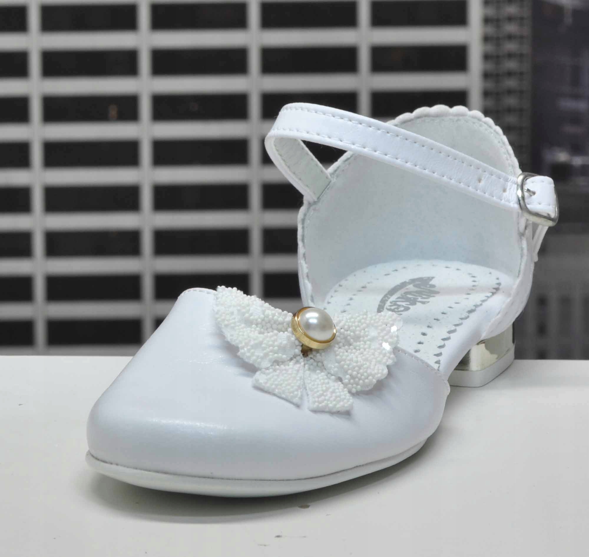 Обувь – незаменимый элемент наряда для причастия, сочетающий в себе элегантность и комфорт. Туфли застегиваются на классический регулируемый ремешок с пряжкой, гибкая подошва из TR, очень устойчивый и тонкий каблук, кожаная стелька. В целом обувь отличается высочайшим качеством. В конструкции обуви учтены не только комфорт и удобство использования, но и здоровье стопы ребенка. Соответствующая высота и жесткий каблук удерживают ногу в нужном месте.