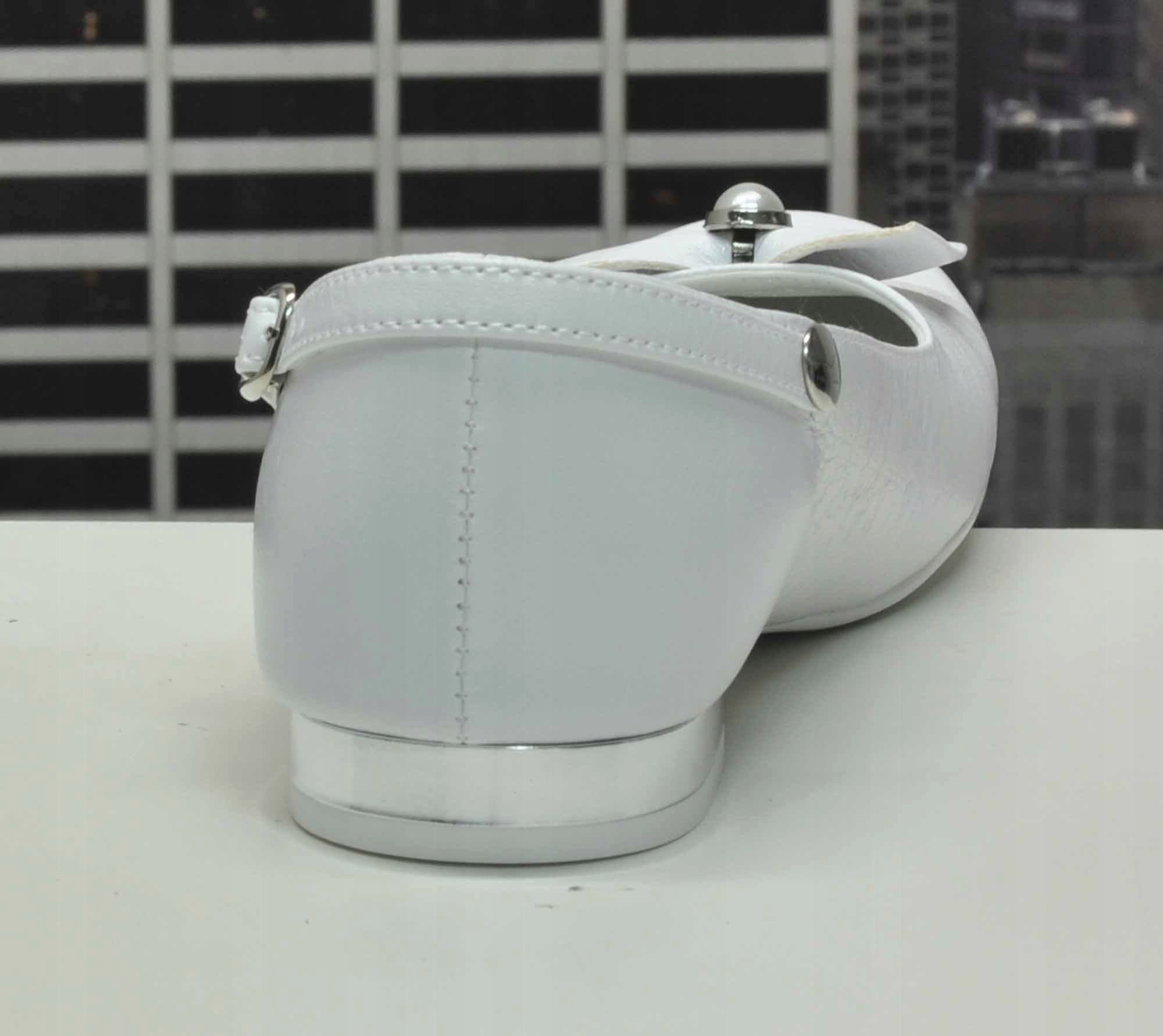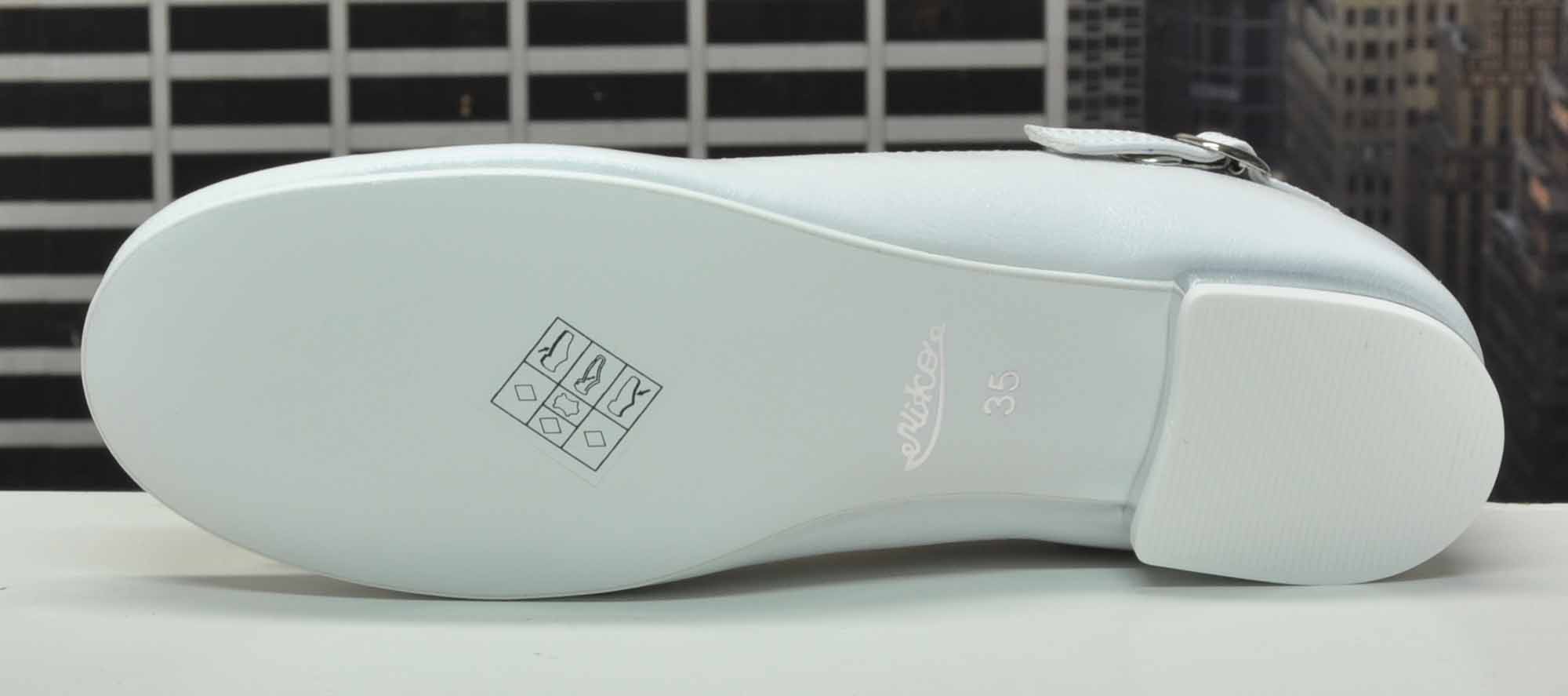 Обувь – незаменимый элемент наряда для причастия, сочетающий в себе элегантность и комфорт. Туфли застегиваются на классический регулируемый ремешок с пряжкой, гибкая подошва из TR, очень устойчивый и тонкий каблук, кожаная стелька. В целом обувь отличается высочайшим качеством. В конструкции обуви учтены не только комфорт и удобство использования, но и здоровье стопы ребенка. Соответствующая высота и жесткий каблук удерживают ногу в нужном месте.