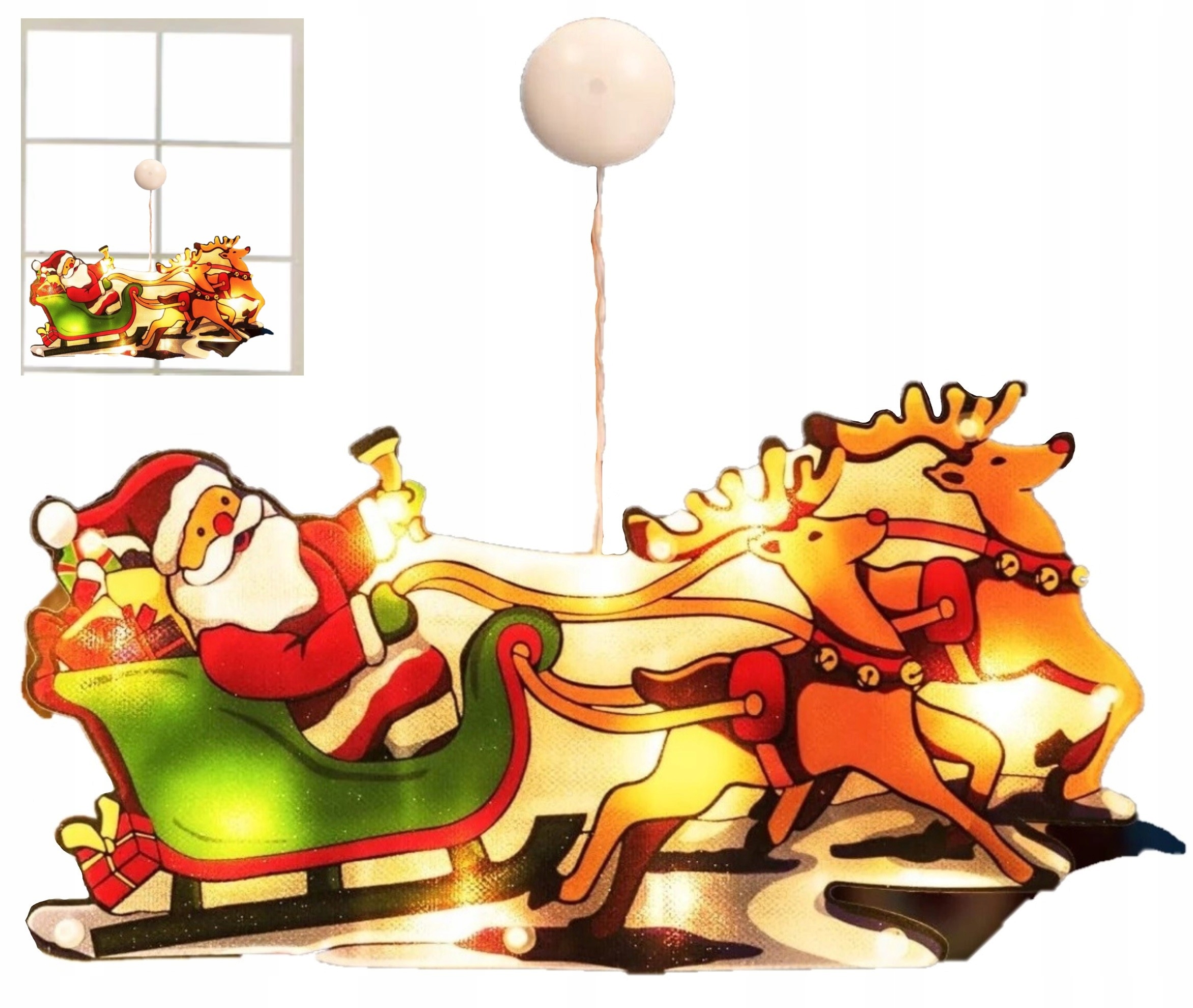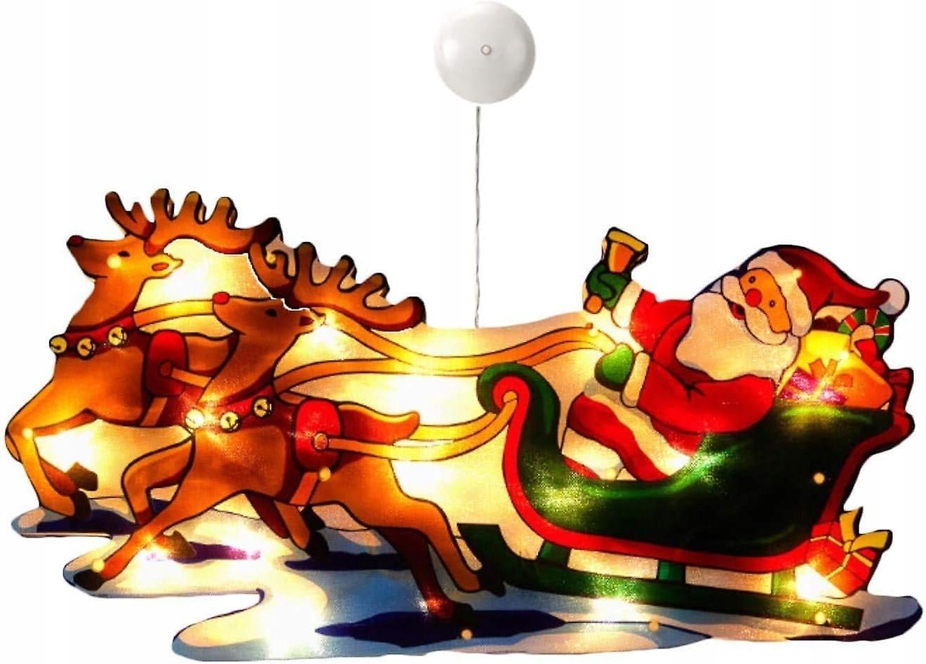 MIKOŁAJ z reniferem ZAWIESZKA Z PRZYSSAWKĄ LED ŚWIECĄCA NA OKNO NA BATERIE