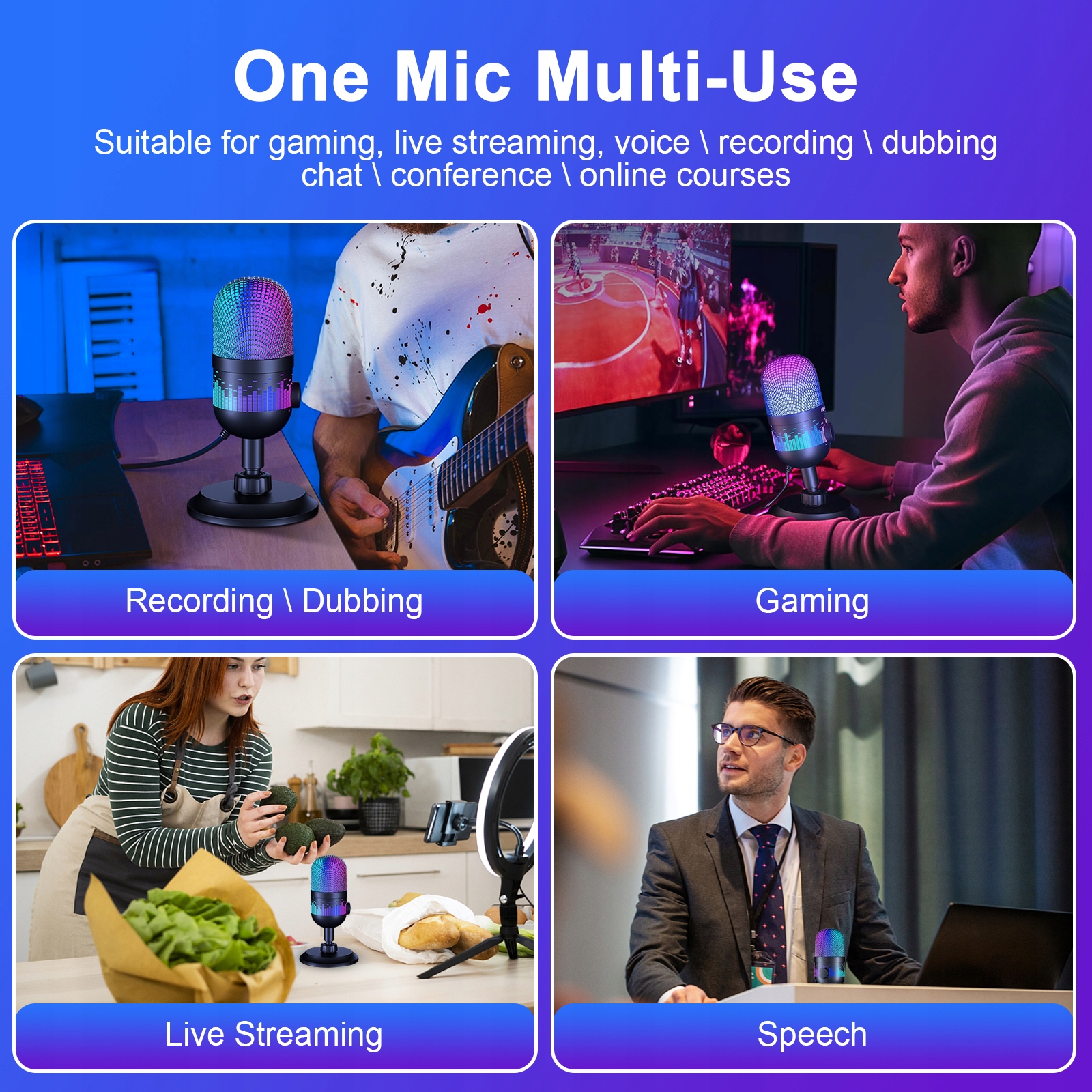 Микрофон для игрового компьютера, поп-фильтр, конденсаторный USB-черный светодиод B5