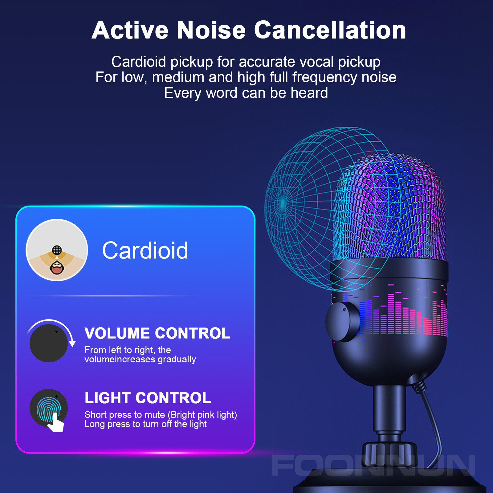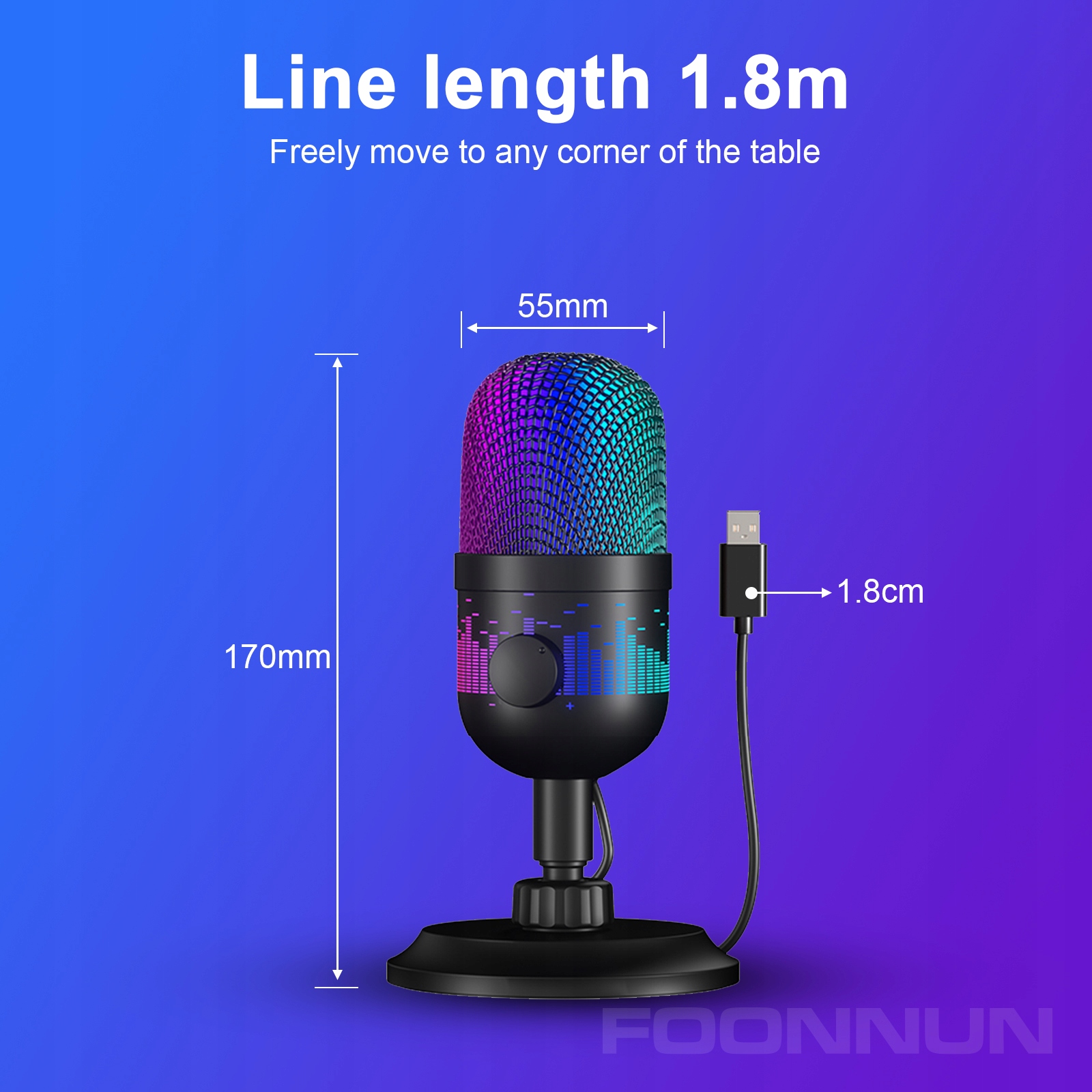 Высококачественный студийный микрофон от FOONNUN с полной комплектацией, позволяющей немедленно использовать его. Благодаря подключению через интерфейс USB микрофон идеально подходит для компьютеров или ноутбуков для записи различных типов звуков, потоковой передачи или разговоров во время игры.