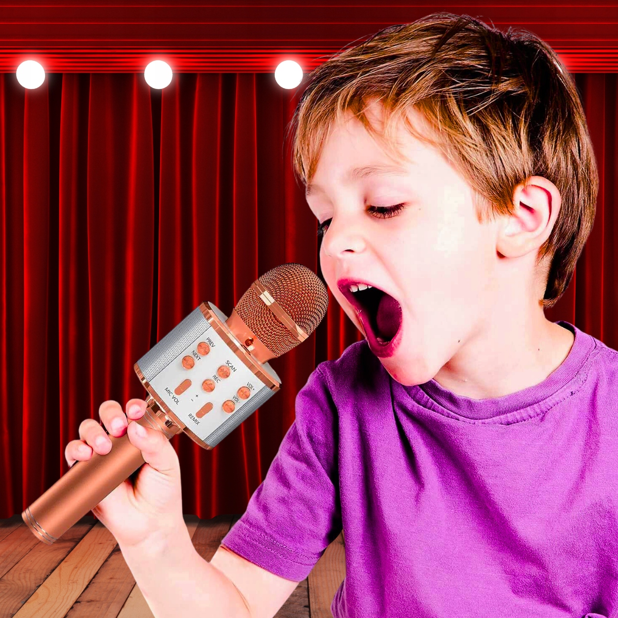 БЕСПРОВОДНОЙ МИКРОФОН ДЛЯ КАРАОКЕ ДЛЯ ДЕТЕЙ, ДИНАМИК ROSEGOLD BLUETOOTH