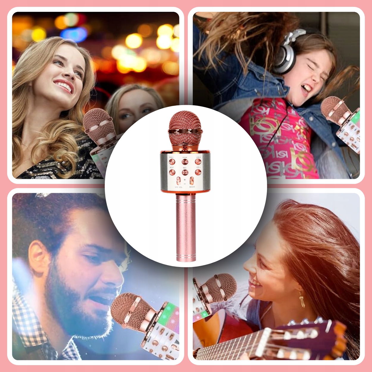 БЕСПРОВОДНОЙ МИКРОФОН КАРАОКЕ ДЛЯ ДЕТЕЙ ДИНАМИК BLUETOOTH ROSEGOLD