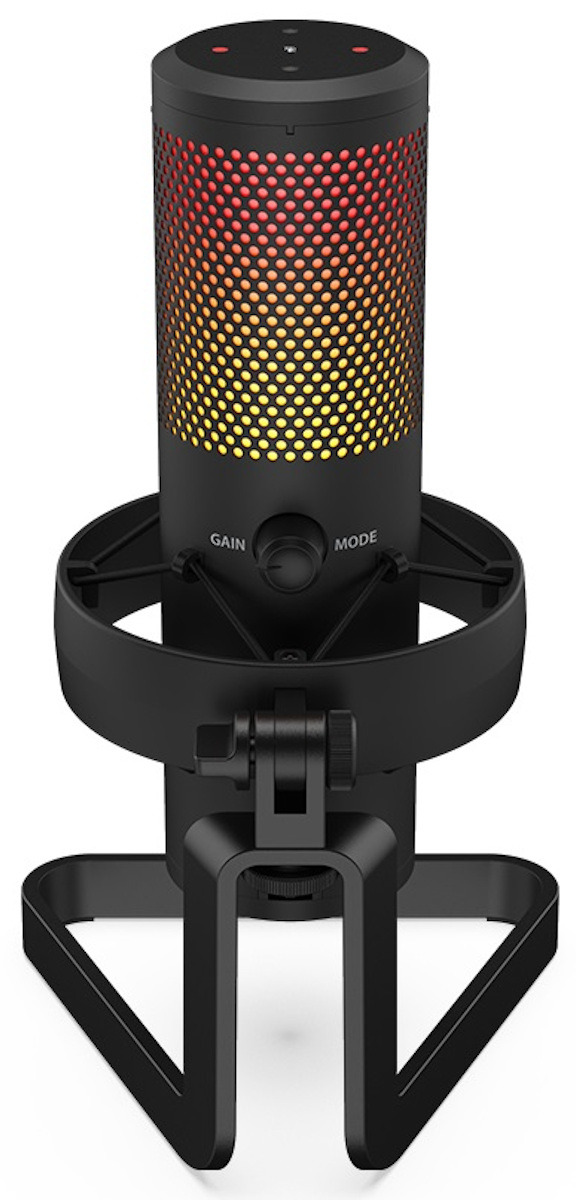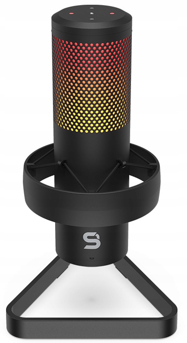 SPC Gear AXIS Streaming USB — универсальный микрофон с возможностью изменения направления записи, записывающий качественный звук. Микрофон имеет прочную металлическую конструкцию, ручку регулировки громкости записи, выход миниджек 3,5 мм для подключения наушников, потенциометр для регулировки громкости воспроизводимого звука, RGB-подсветку, сенсорную кнопку отключения микрофона и самое главное. , возможность регулировки направления записи.